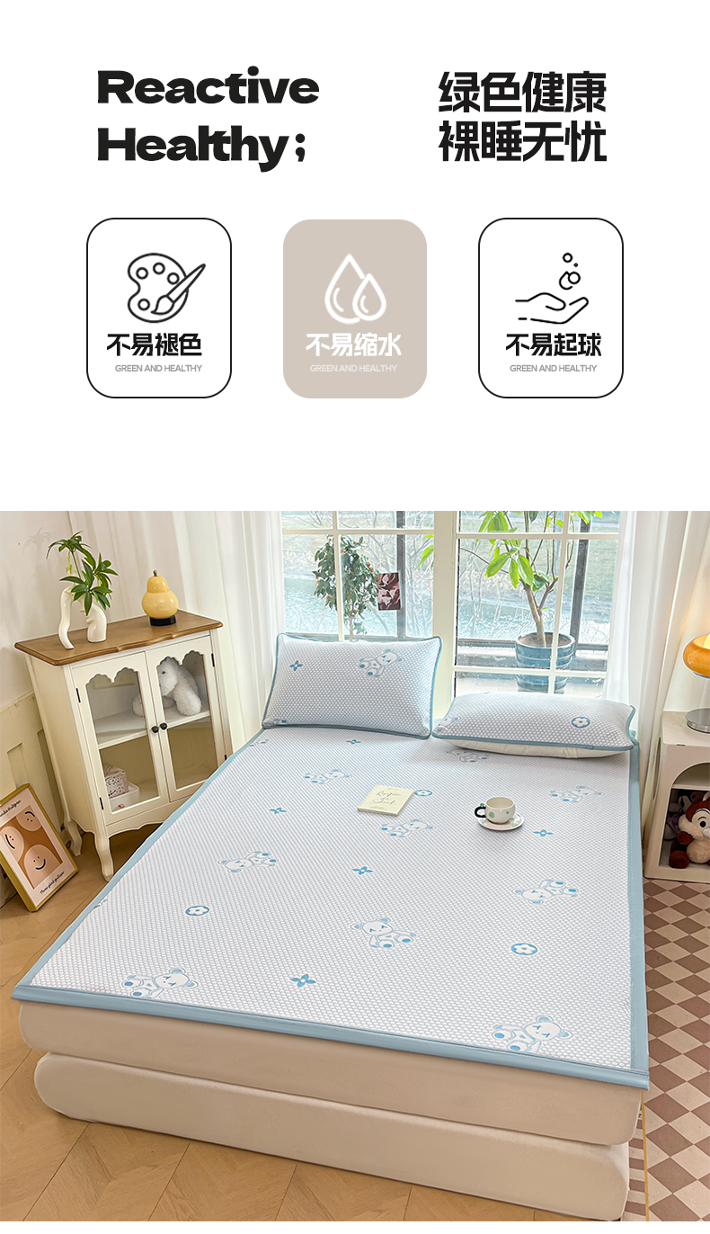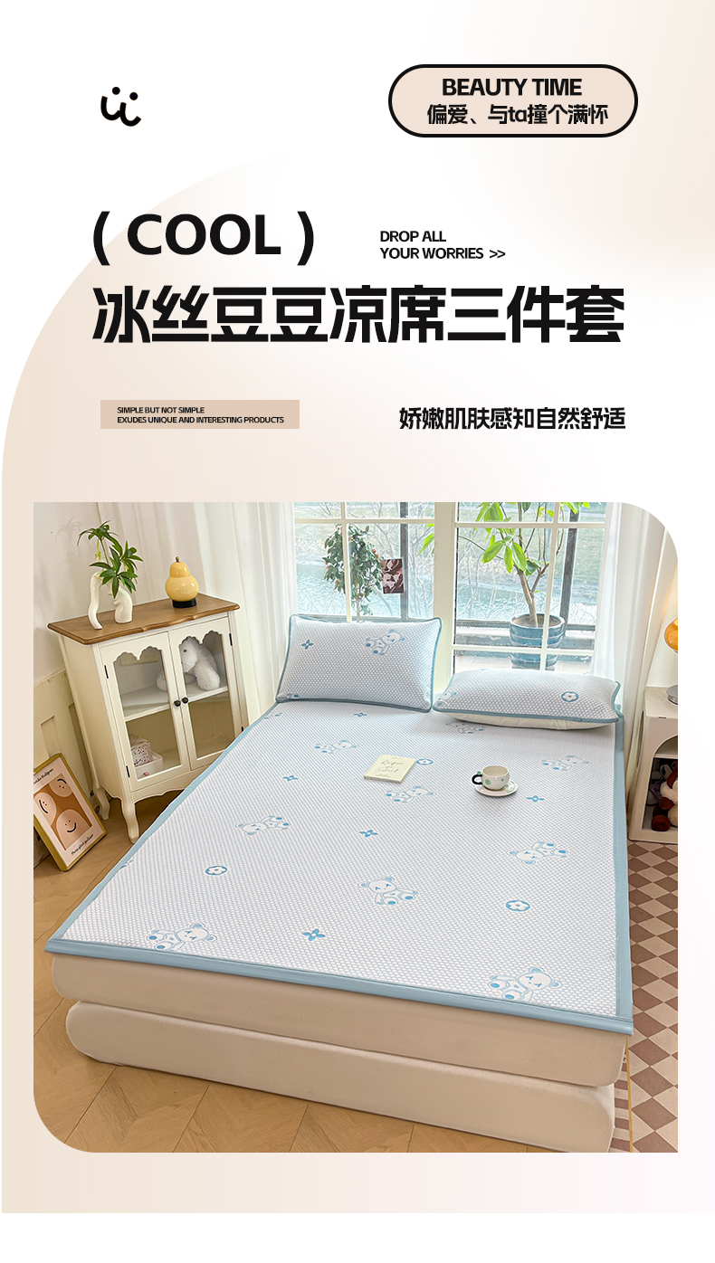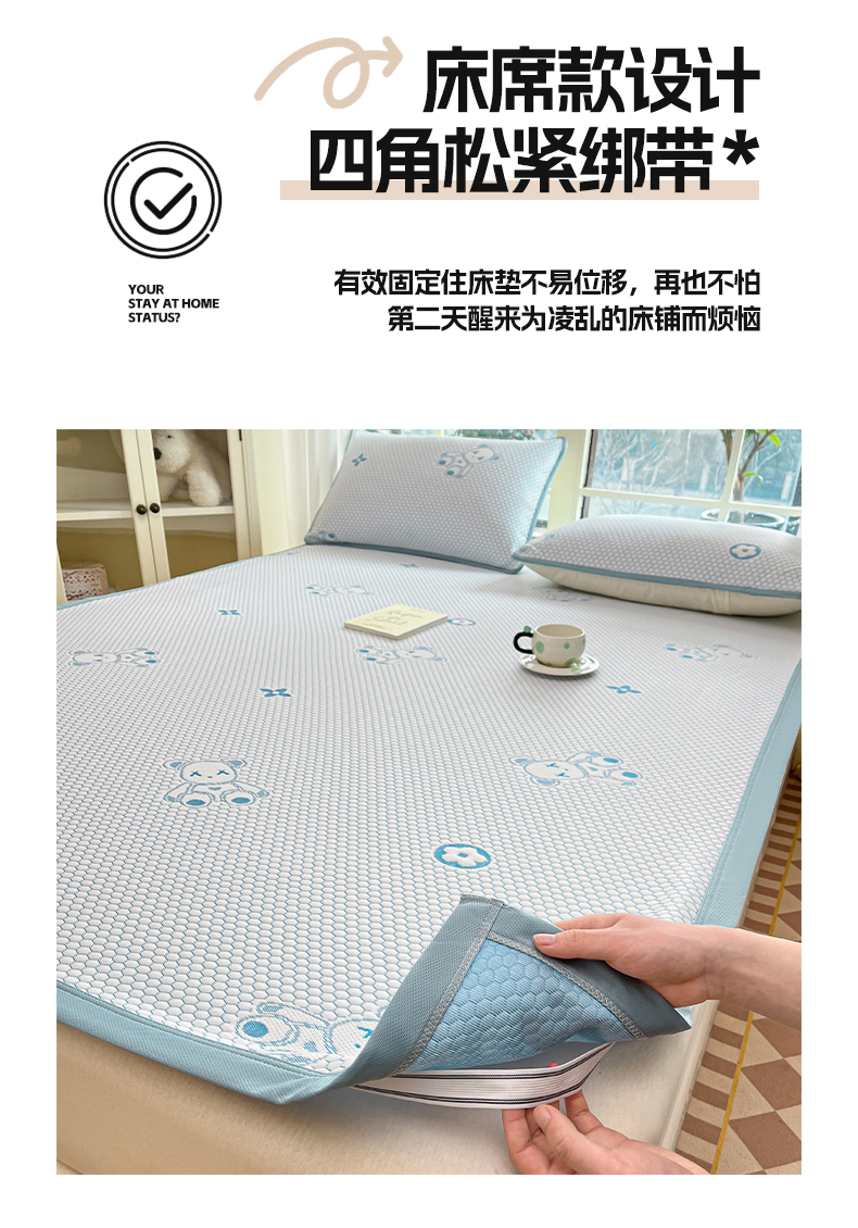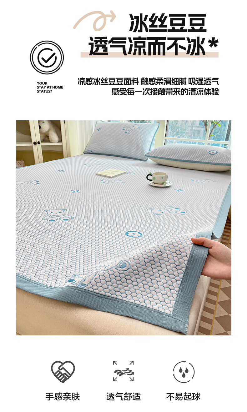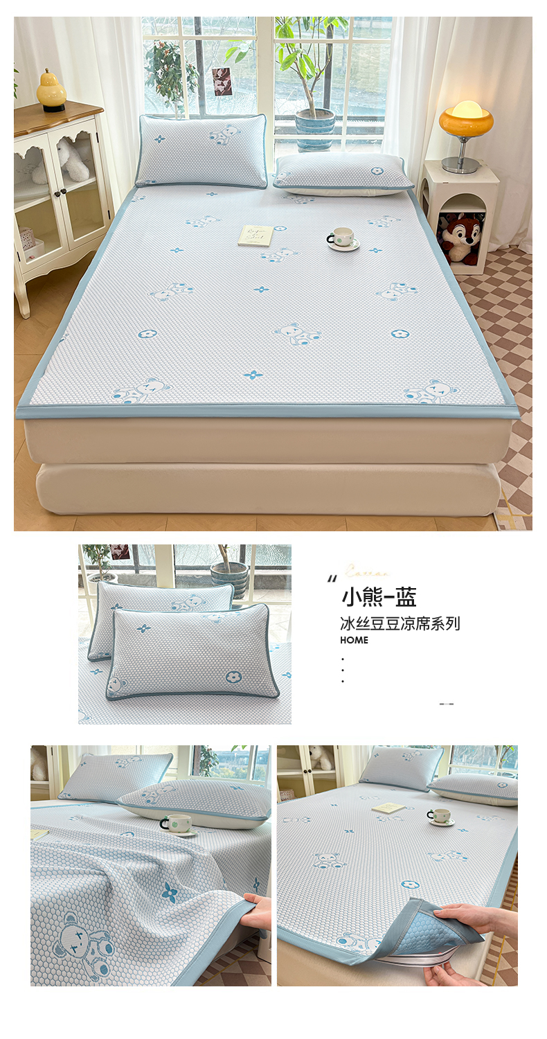 商品名称:卡伦2025新款冰丝豆豆凉席床席系列 小熊-蓝