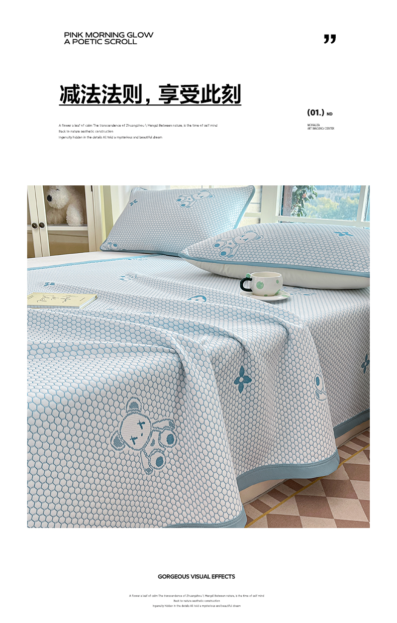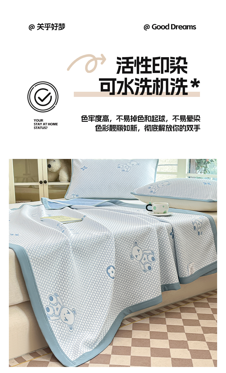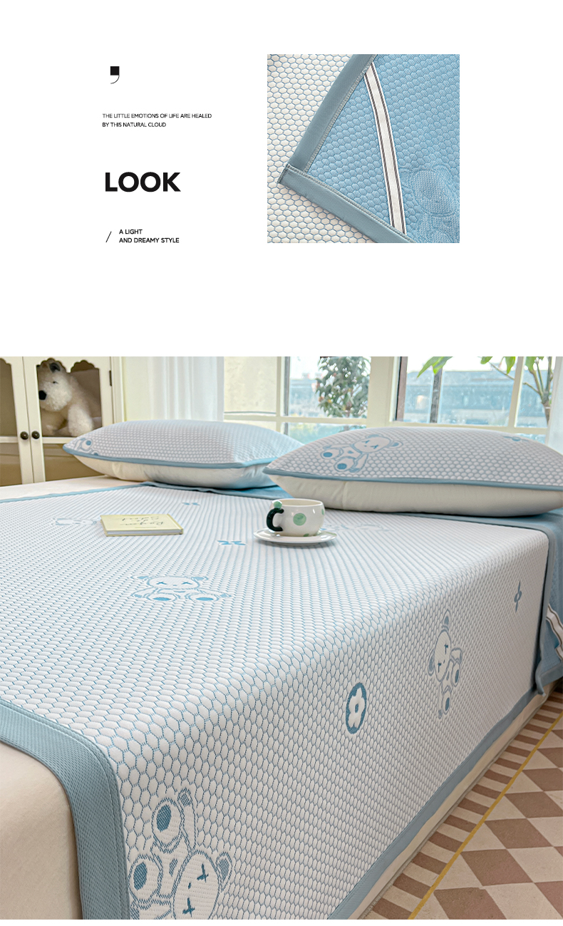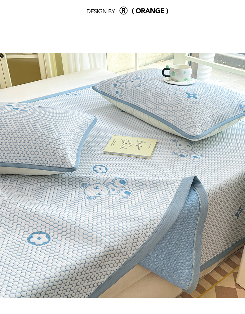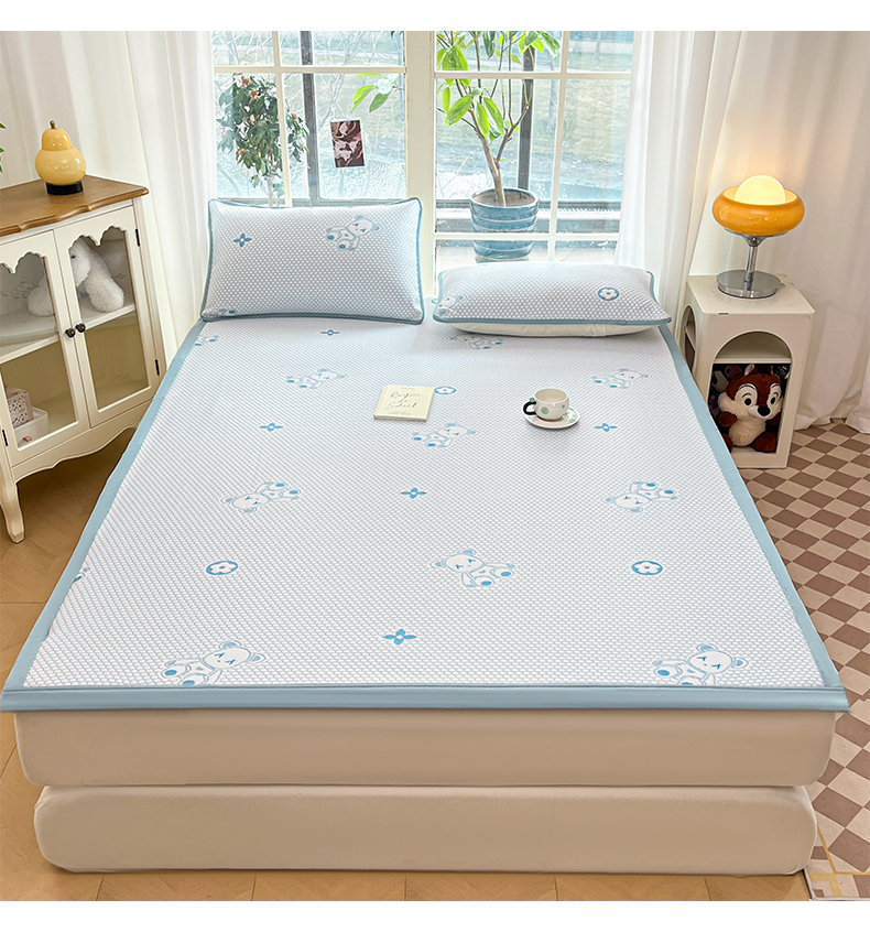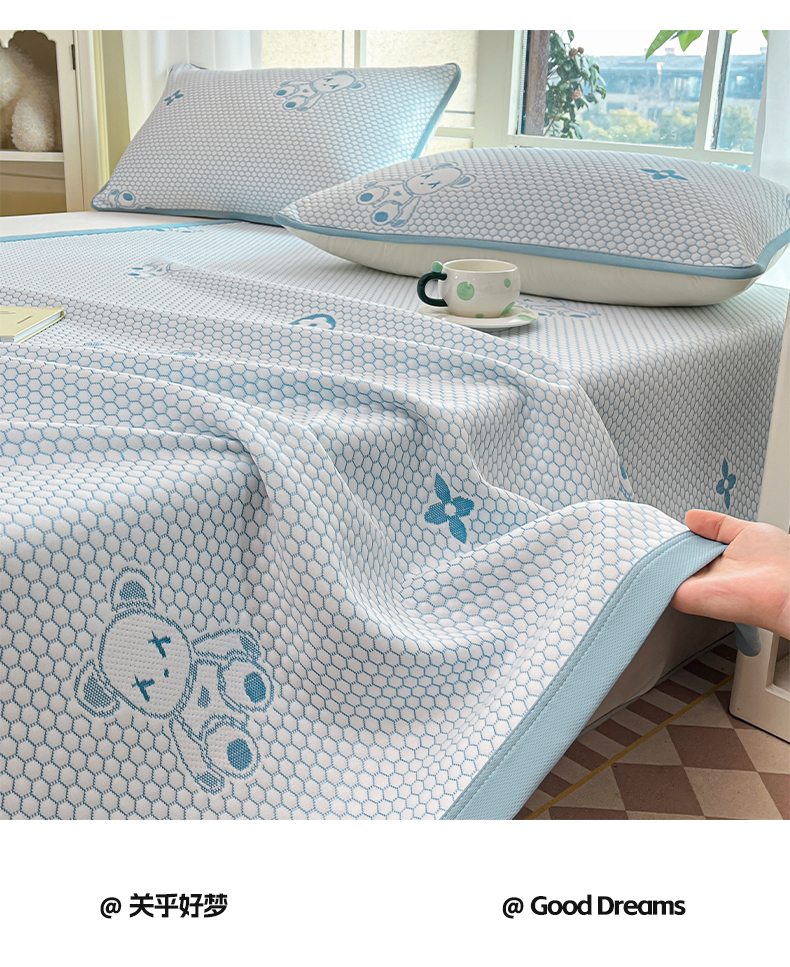 卡伦2025新款冰丝豆豆凉席床席系列 小熊-蓝