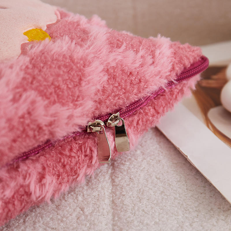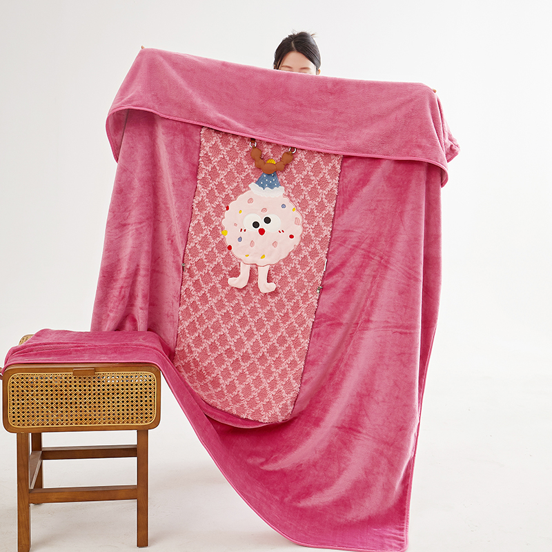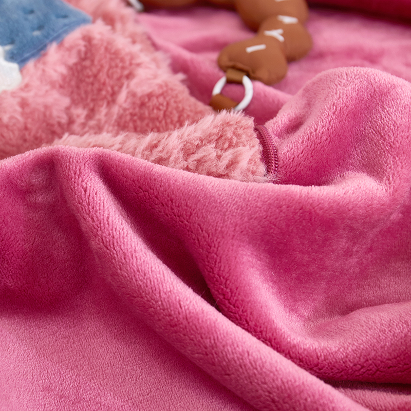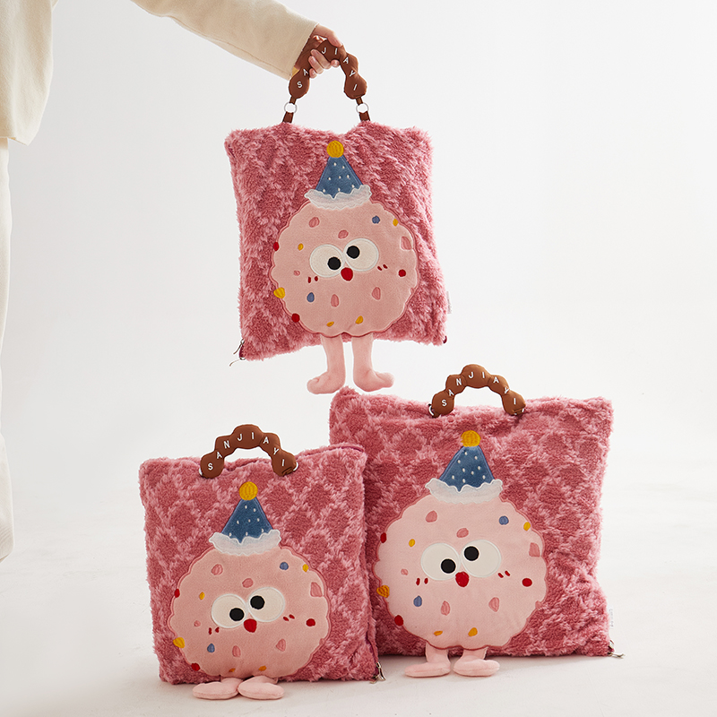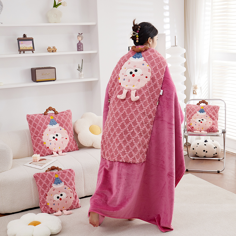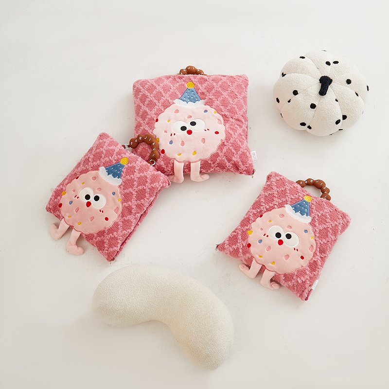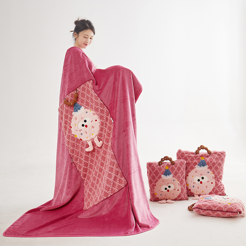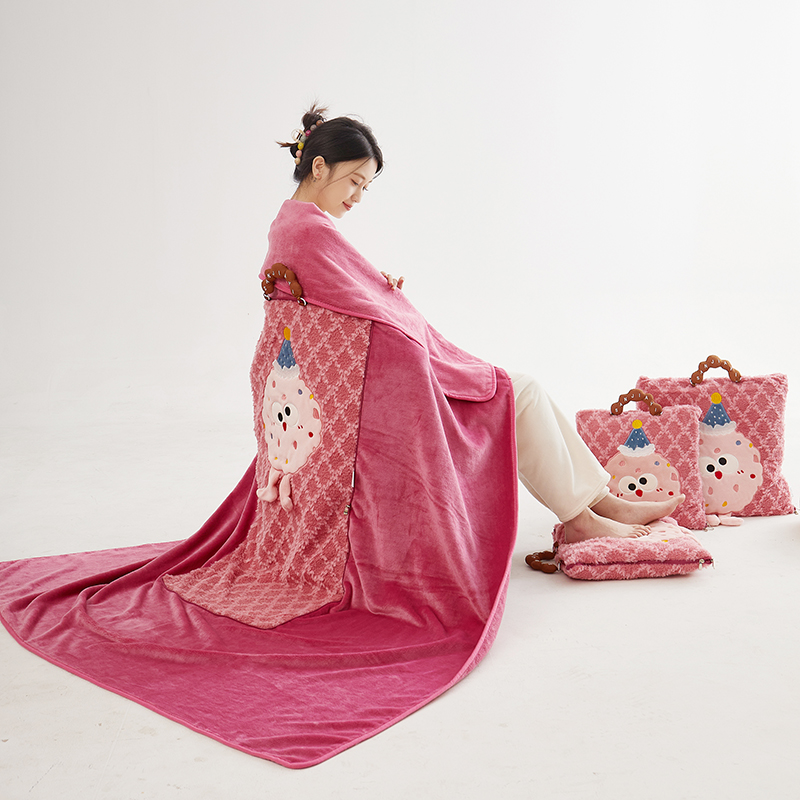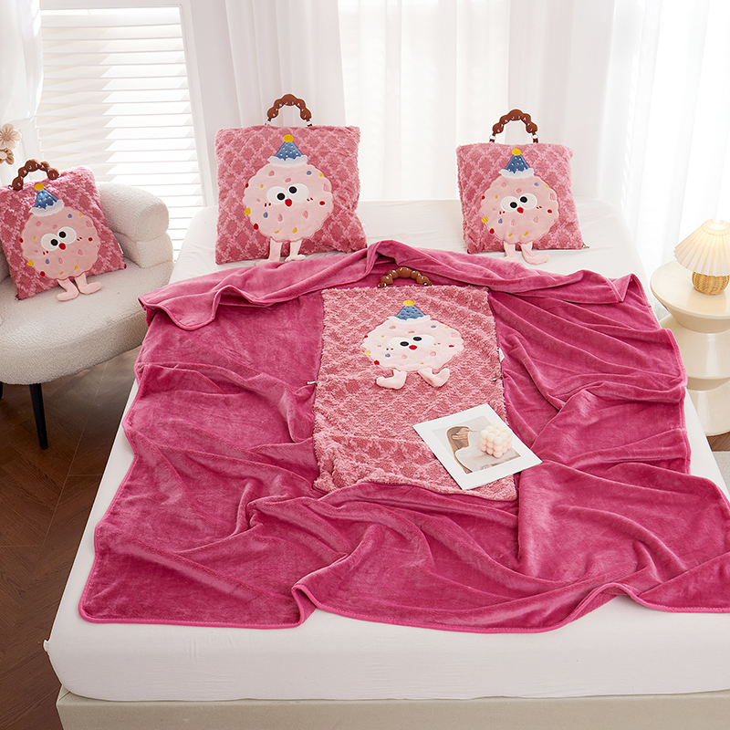商品名称:古本家居 2025新款贴布立体卡通刺绣曲奇抱枕毯抱枕被 曲奇毛毯-莓红色