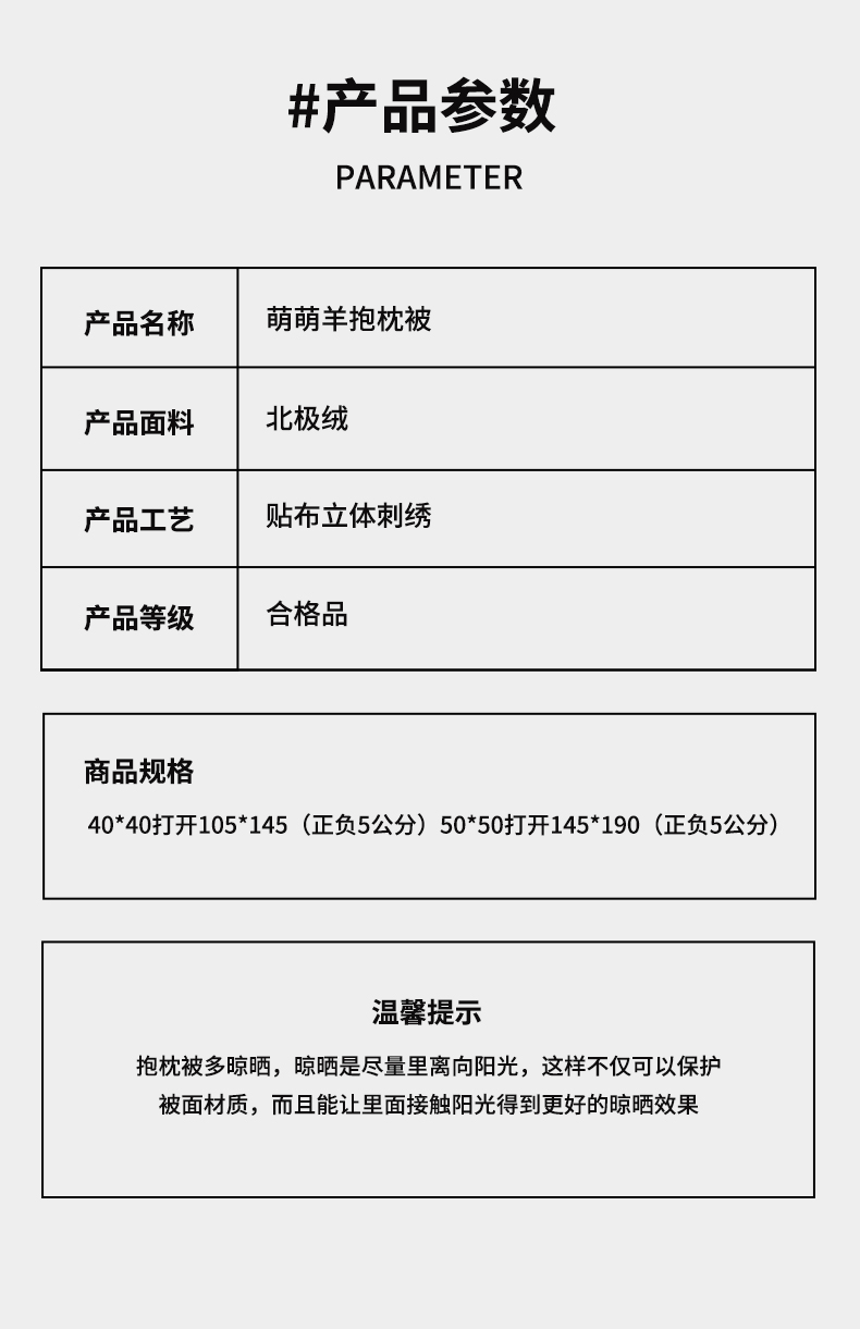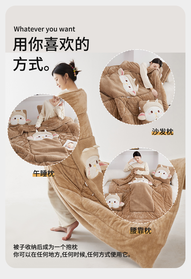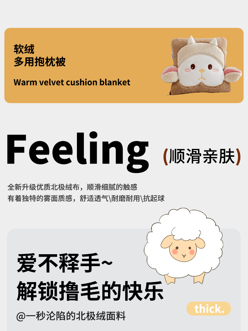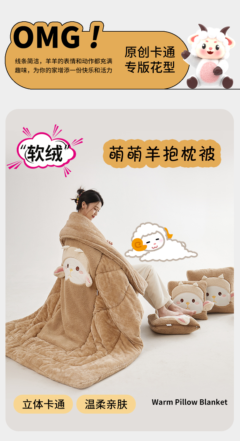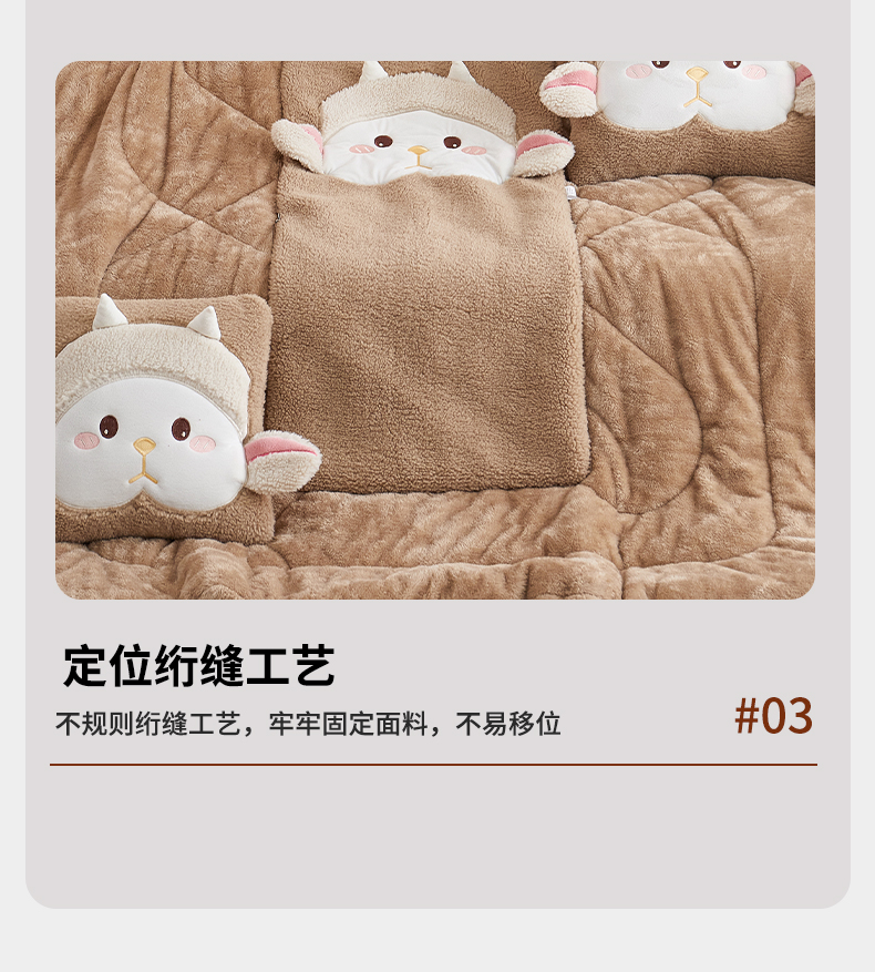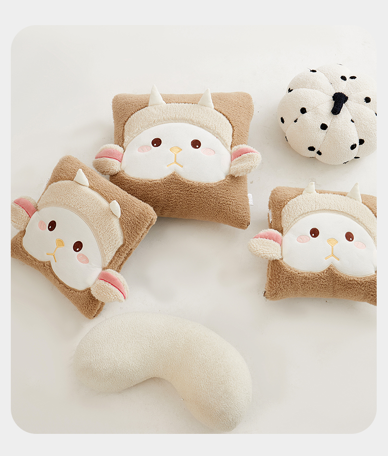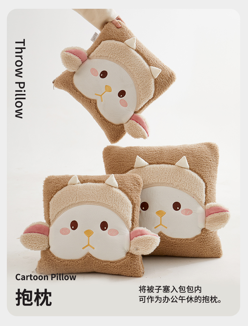 商品名称:古本家居 2025新款羊绒贴布立体刺绣萌萌羊抱枕被 萌萌羊驼色