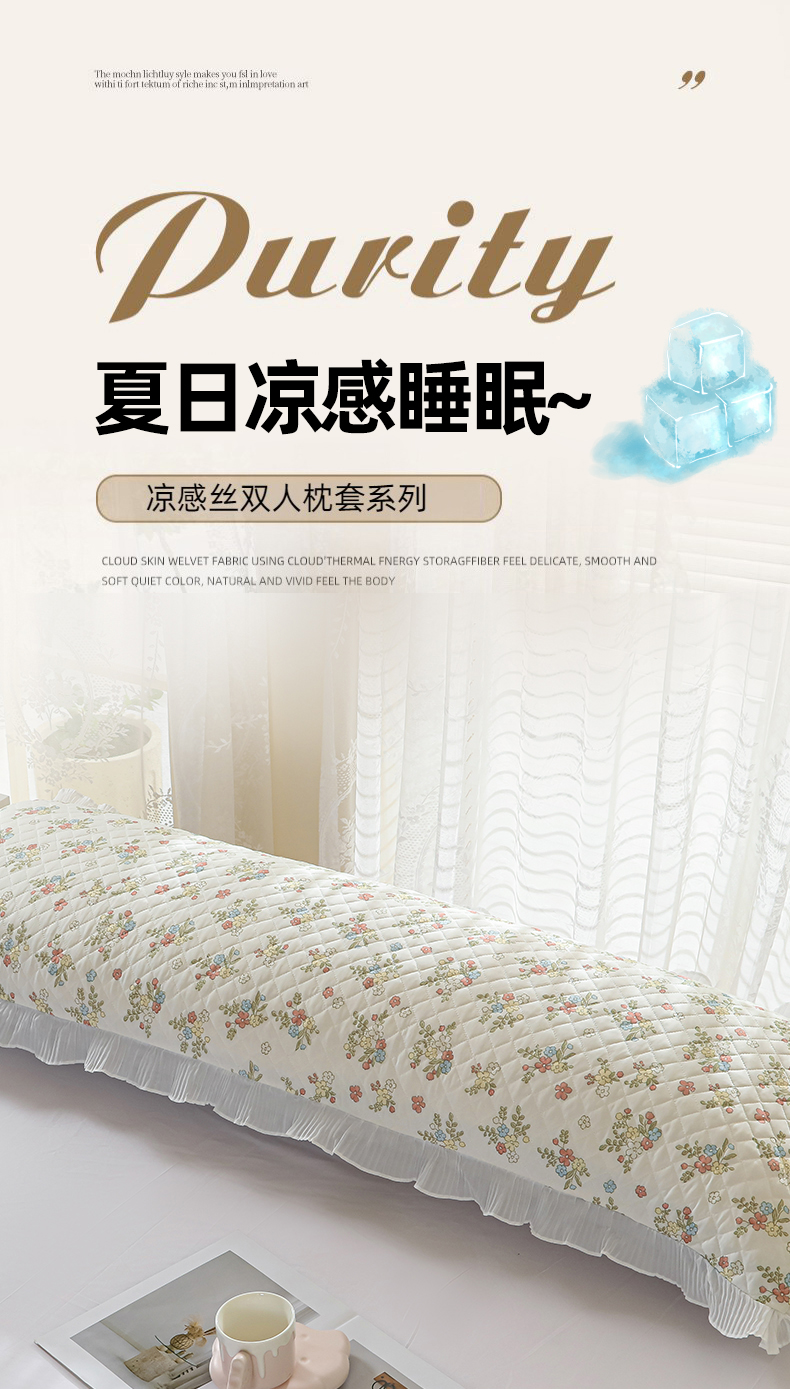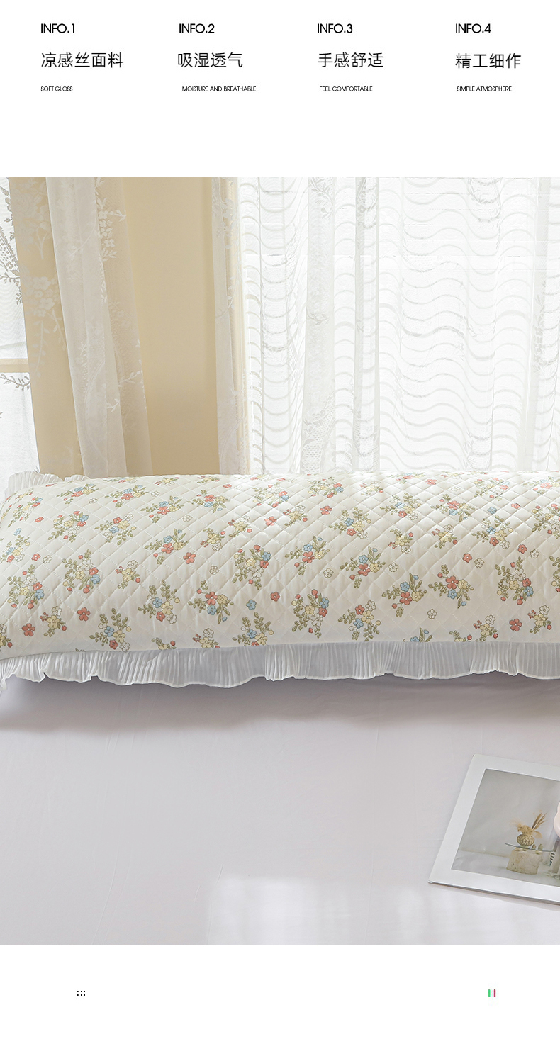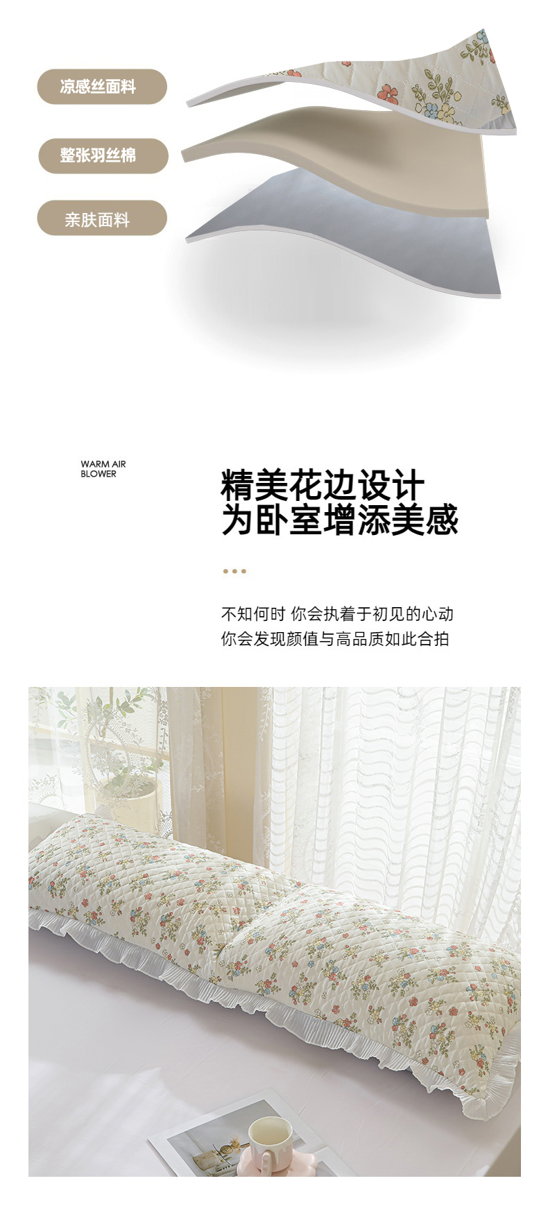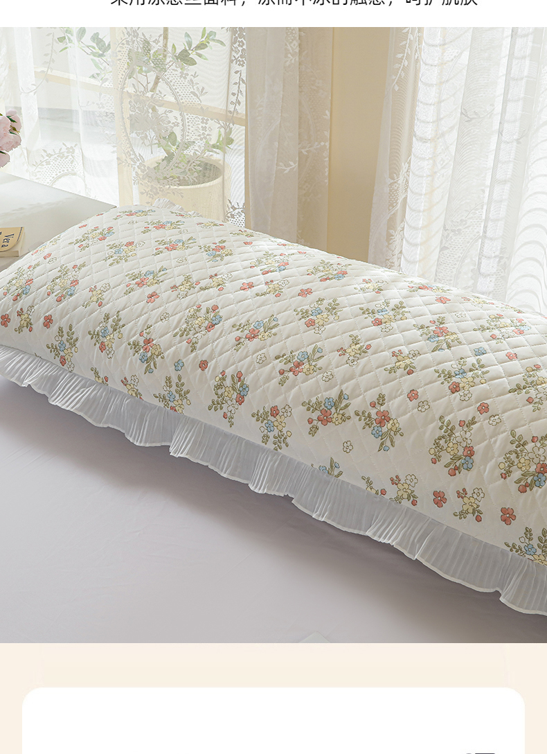 美宜家 2025新款夏季凉感丝双人枕套花边情侣长枕套 硕果