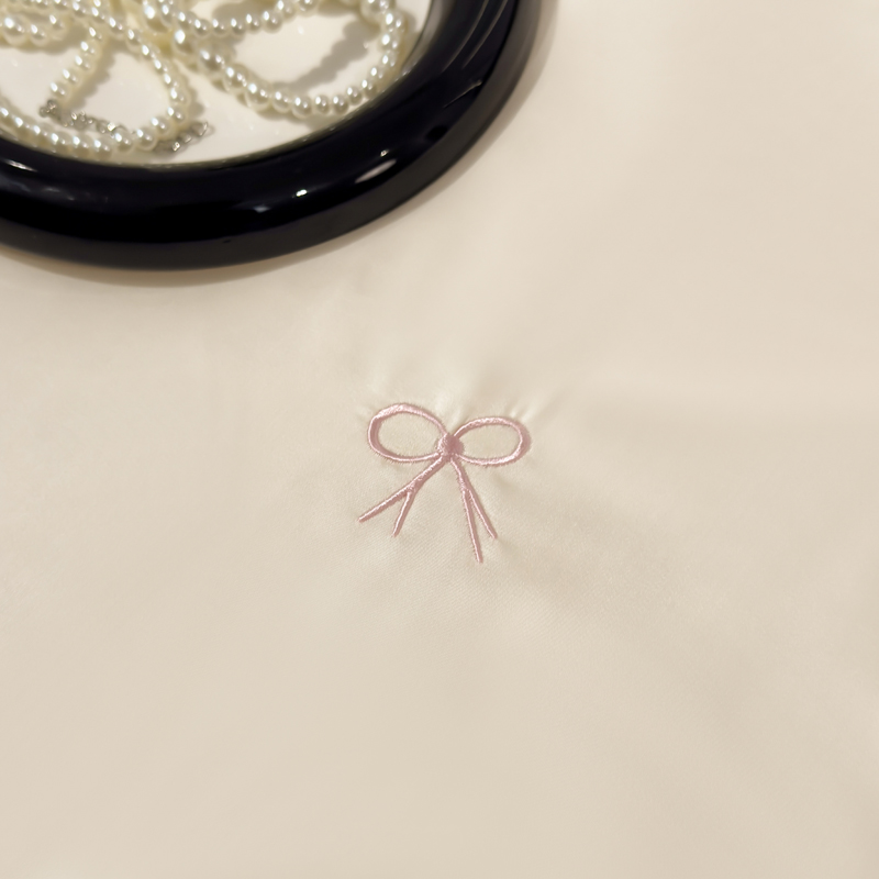 商品名称:2025新款清凉舒适水洗冰丝刺绣夏被四件套 蝴蝶结-奶白粉