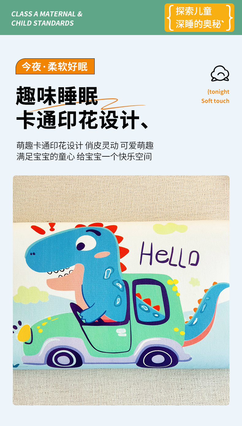 商品名称:梵赫 2025新款全棉A类儿童针织棉记忆枕(可拆卸) 开车恐龙 30*50 含芯