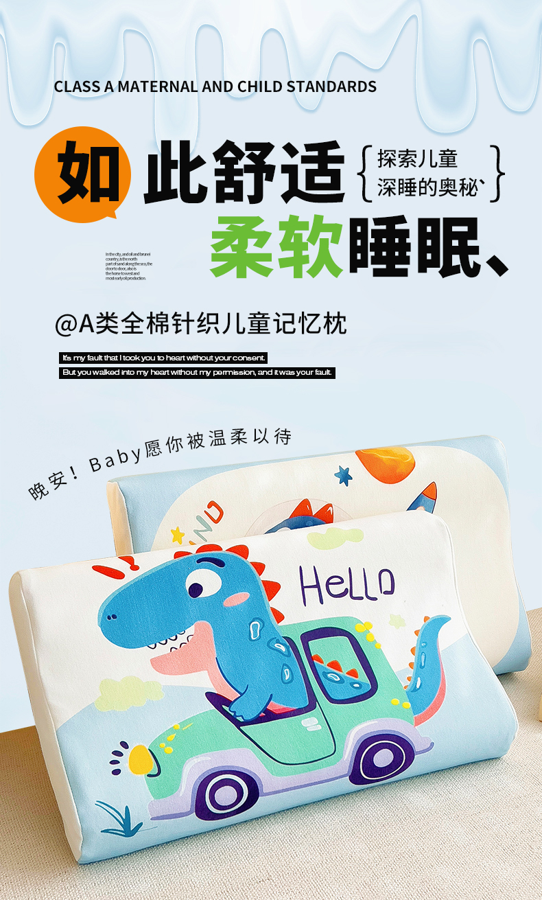 商品名称:梵赫 2025新款全棉A类儿童针织棉记忆枕(可拆卸) 开车恐龙 单枕套