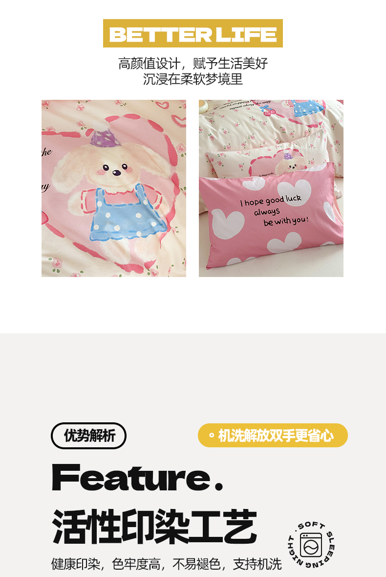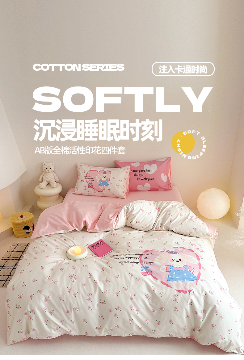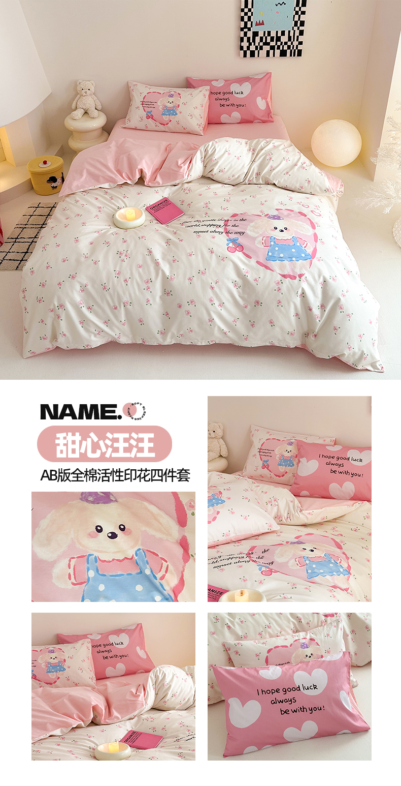 当前位置: 91家纺网 > 商品网购 > 床品套件 > 四件套 > 全棉普通四件套 > 2025新款全棉大版卡通数码印花纯棉四件套 甜心汪汪