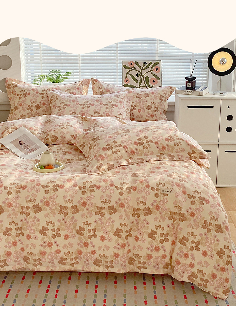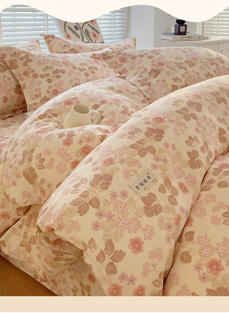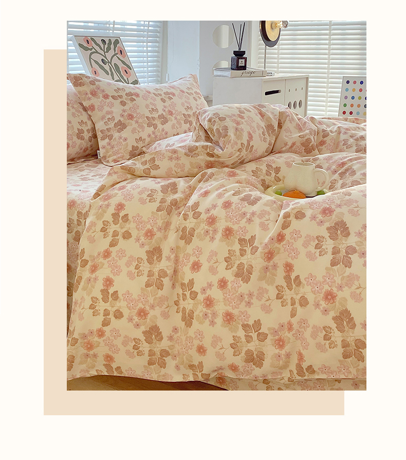 凯磊2025新款老粗布印花四件套 暖花甜梦