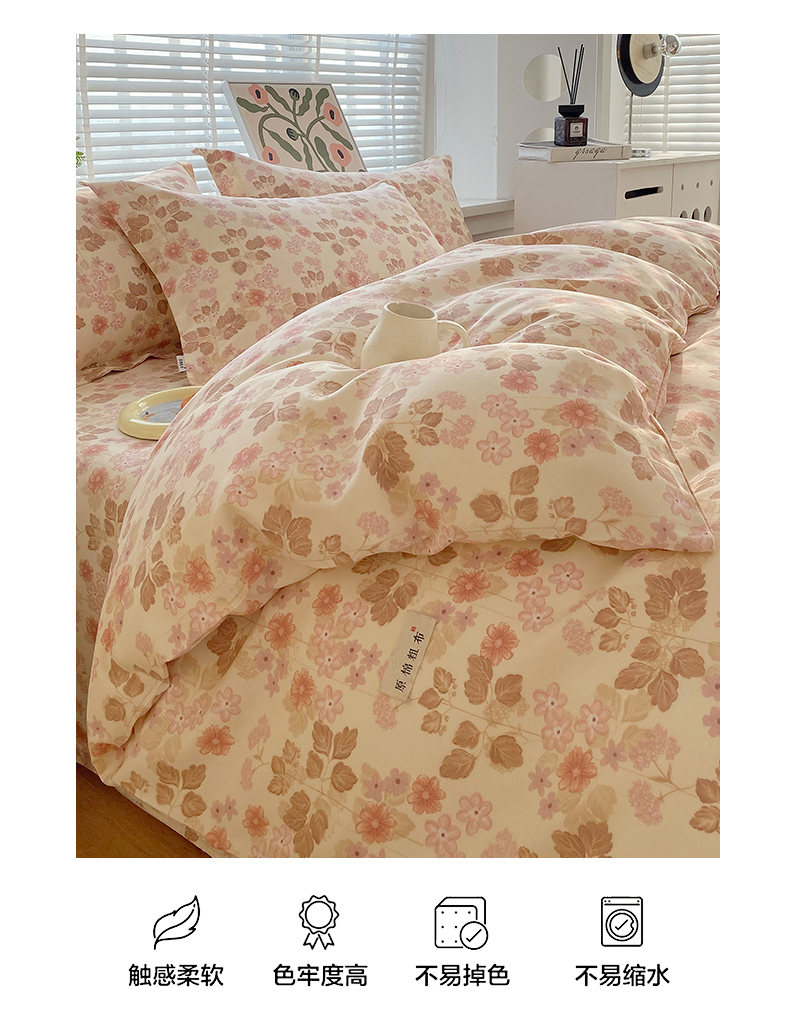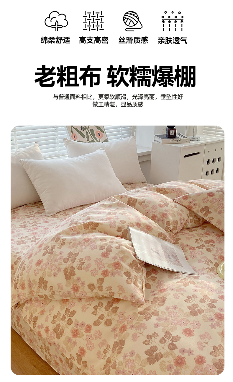 商品名称:凯磊2025新款老粗布印花四件套 暖花甜梦