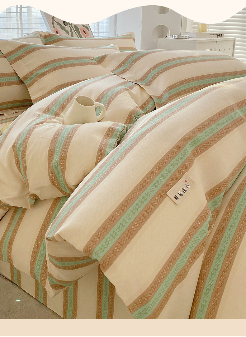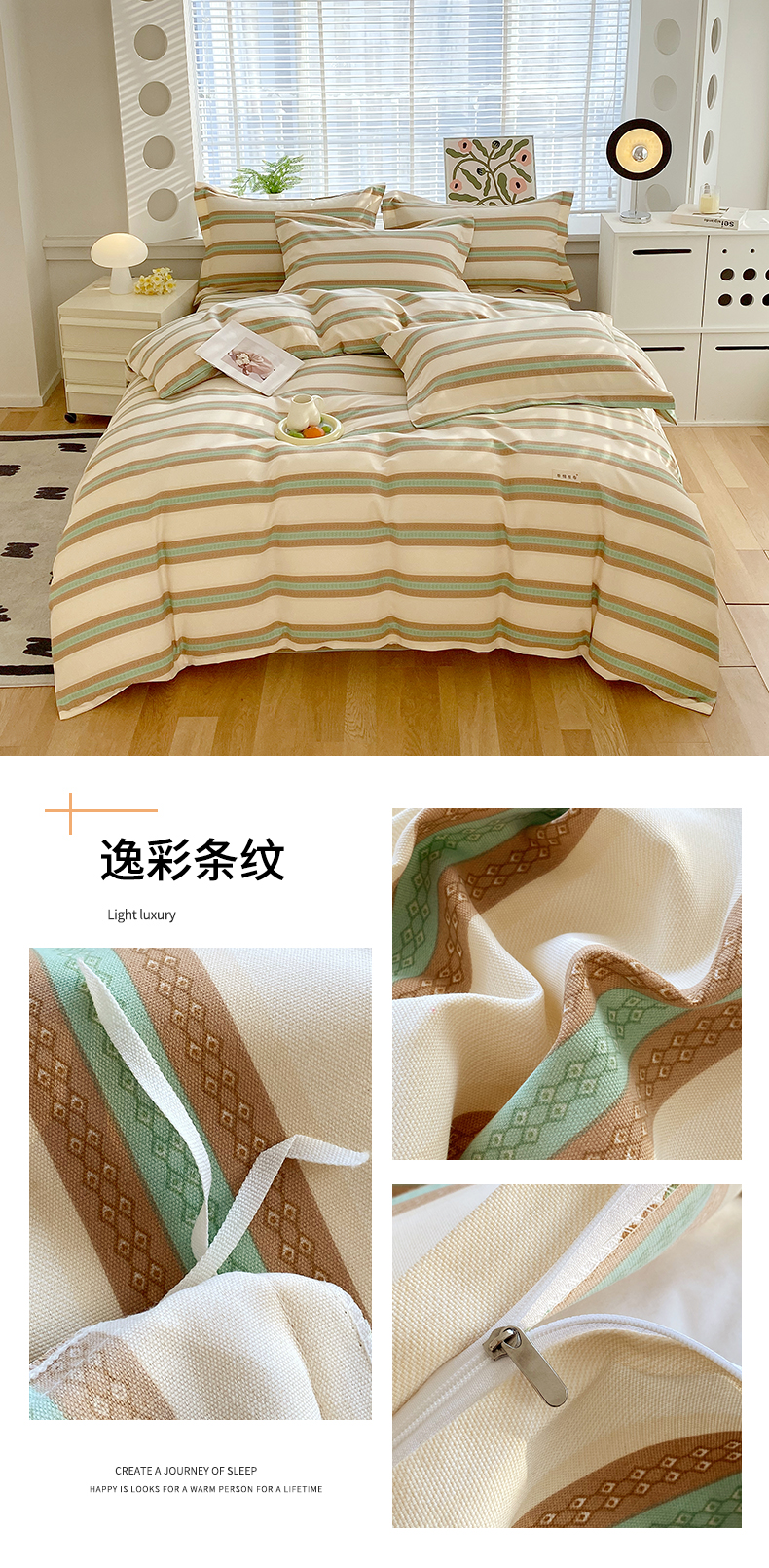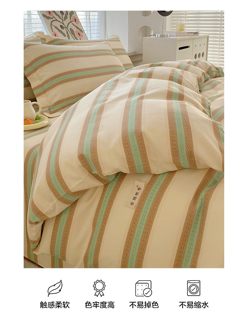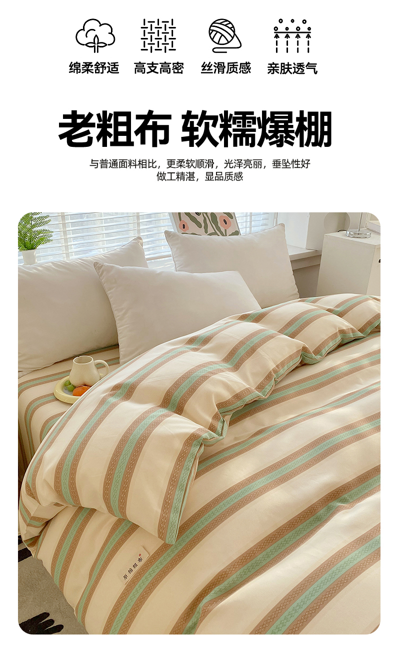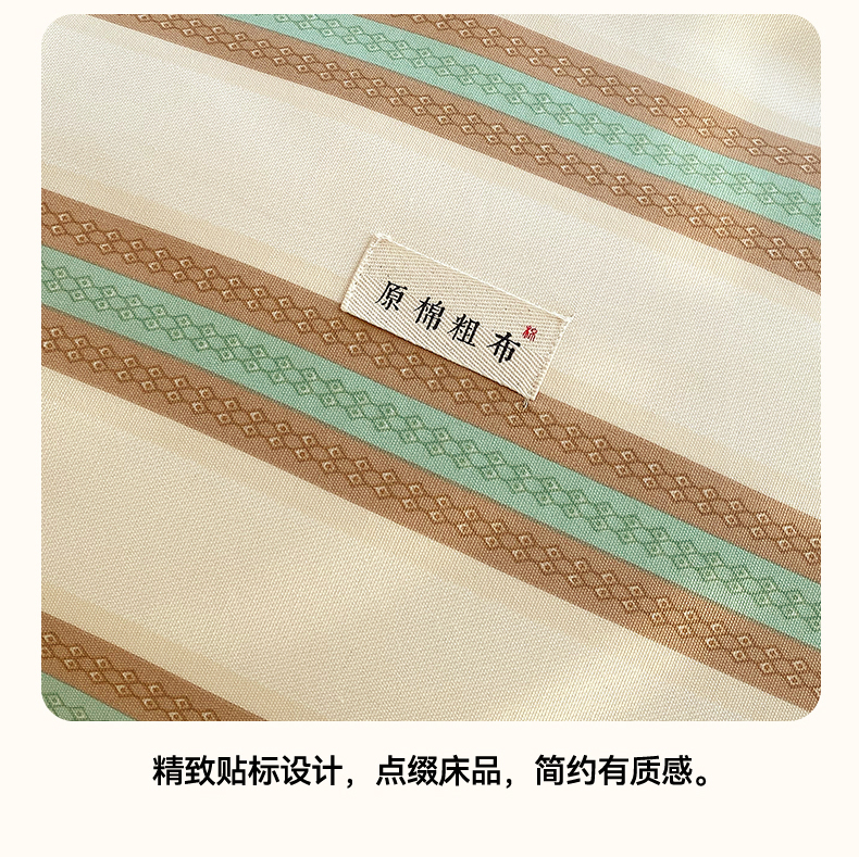 商品名称:凯磊2025新款老粗布印花四件套 逸彩条纹