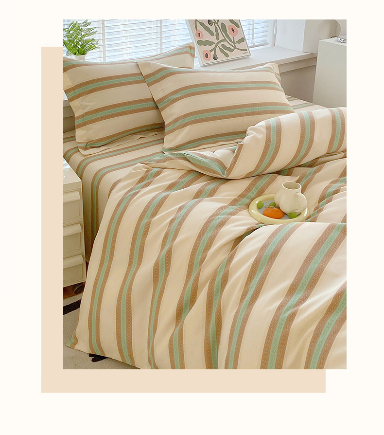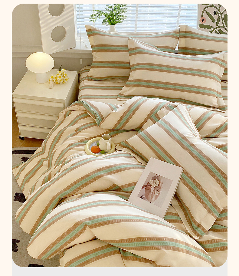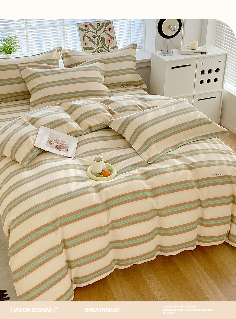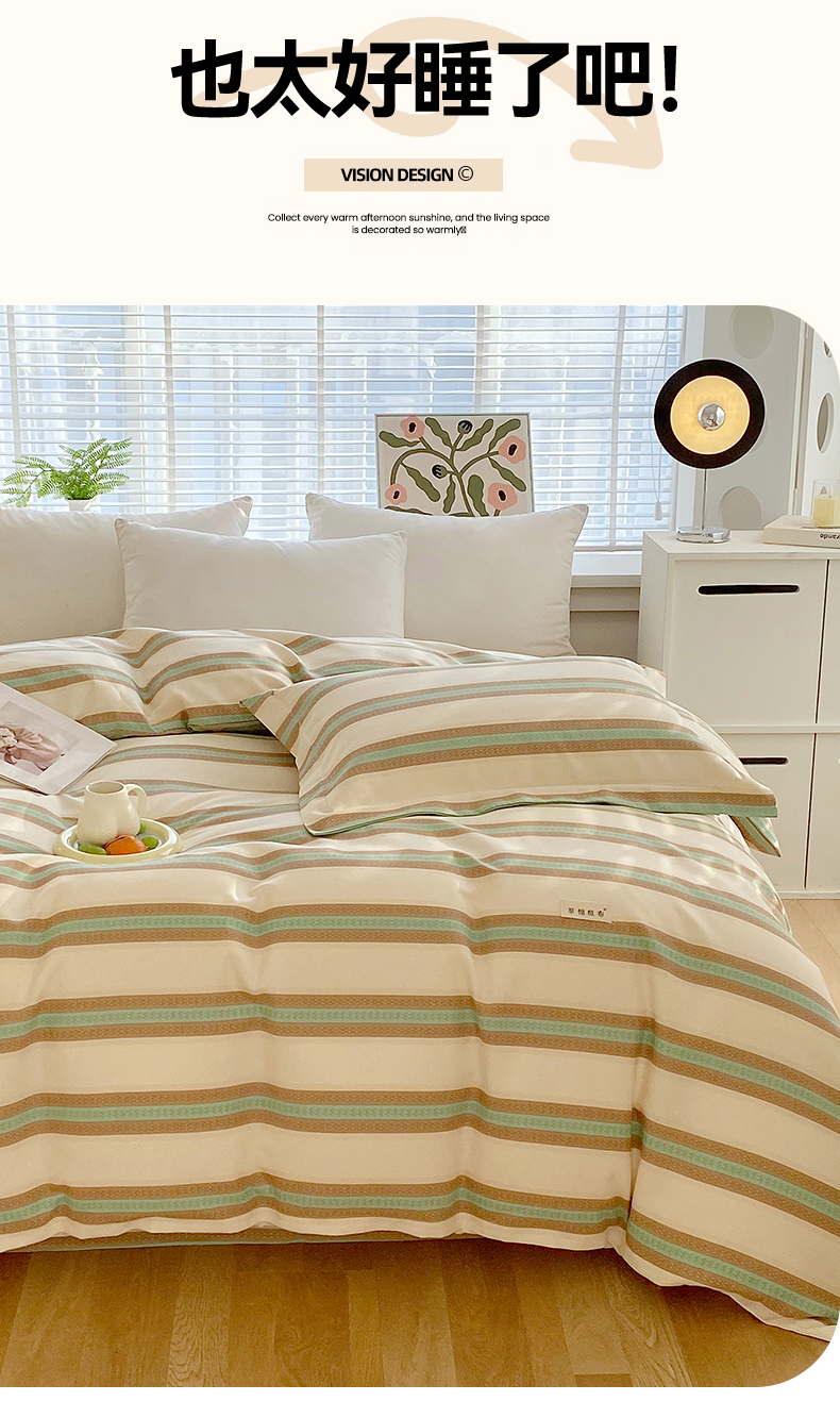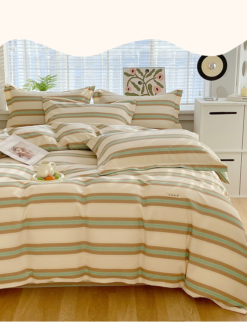 商品名称:凯磊2025新款老粗布印花四件套 逸彩条纹