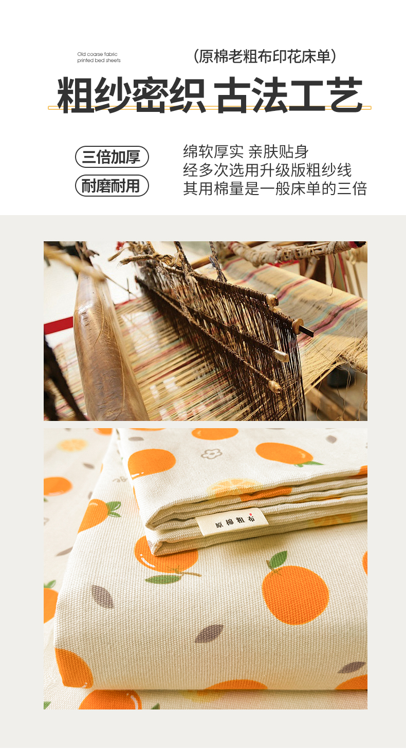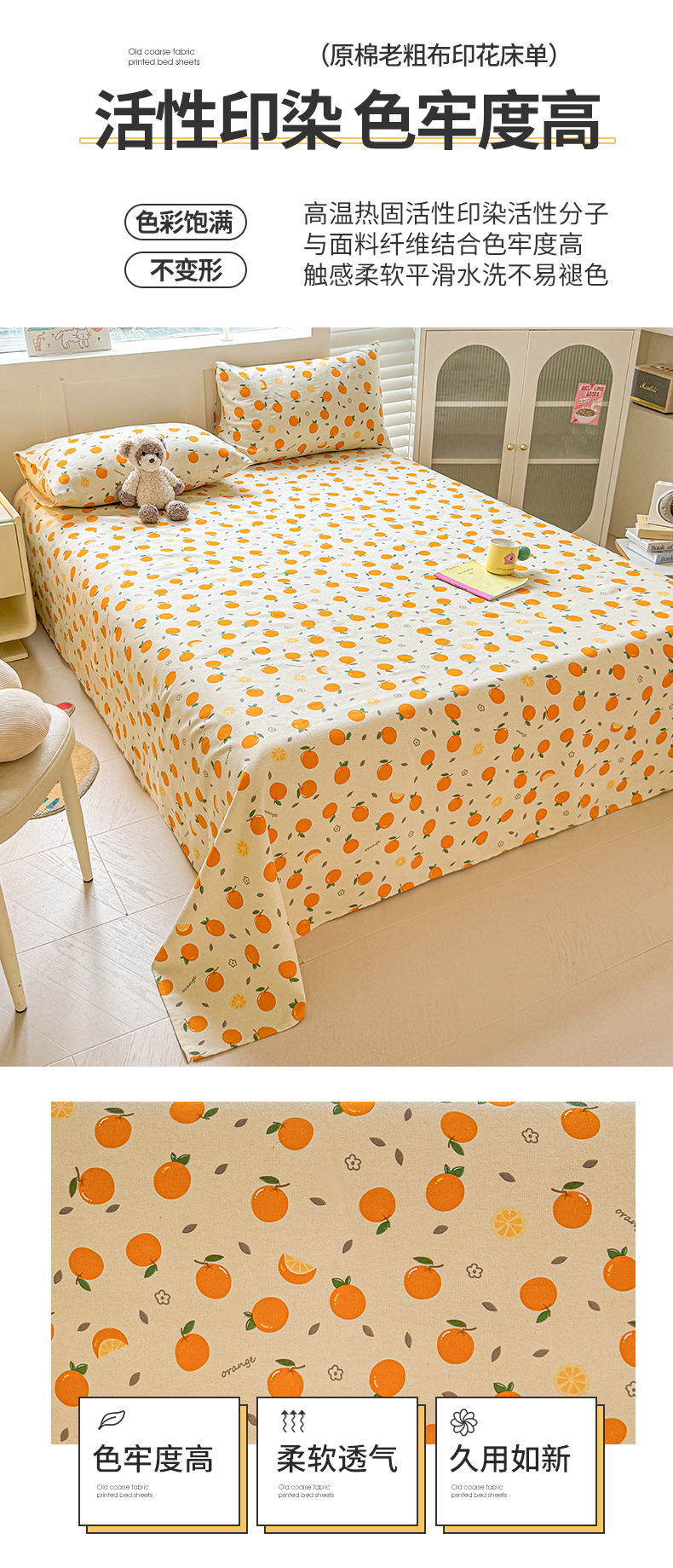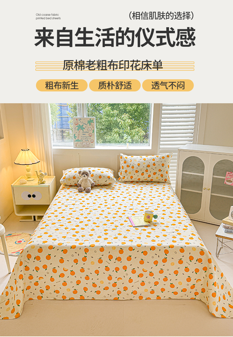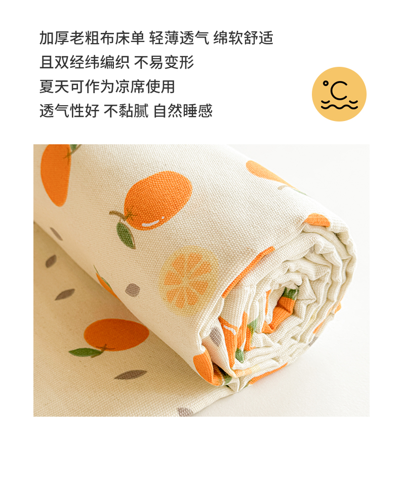 晓时候 2025原棉老粗布床单凉席三件套软凉席子单床单2025新款老粗布床单 小桔子