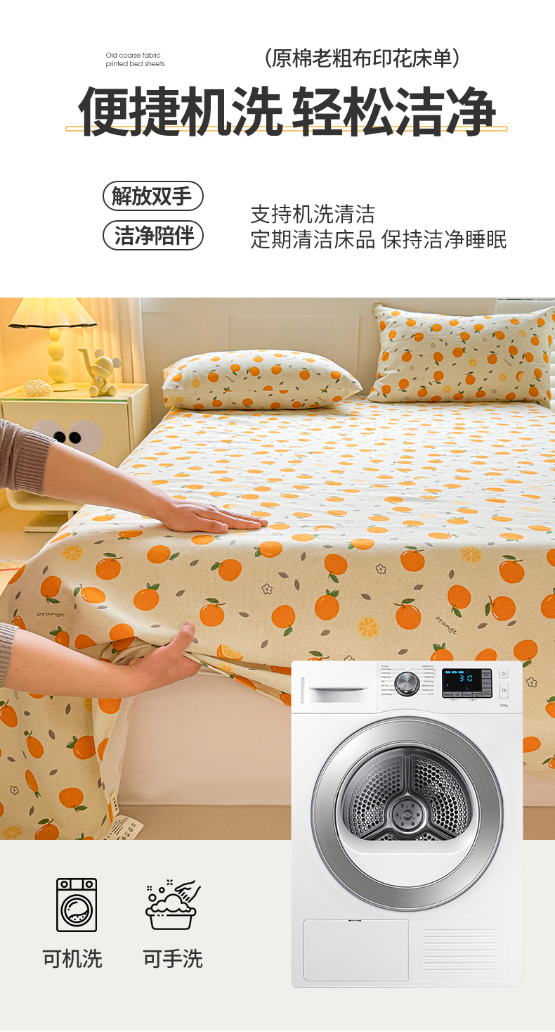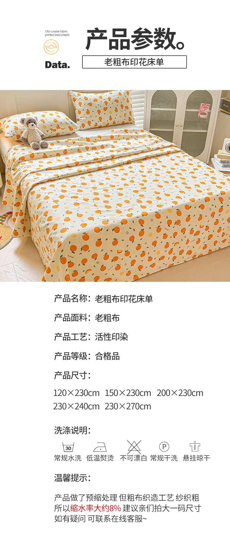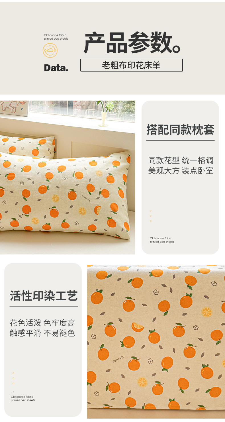 晓时候 2025原棉老粗布床单凉席三件套软凉席子单床单2025新款老粗布床单 小桔子