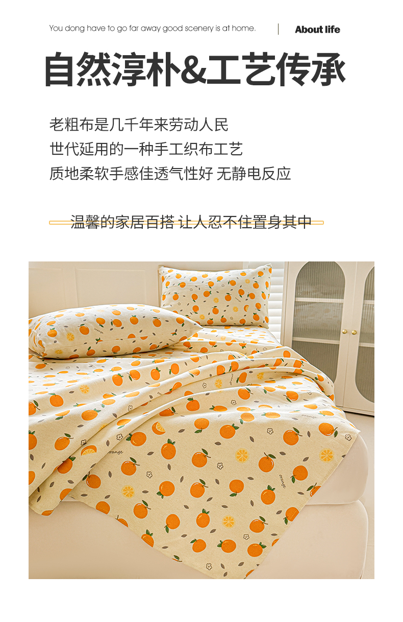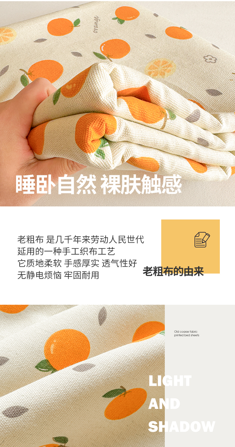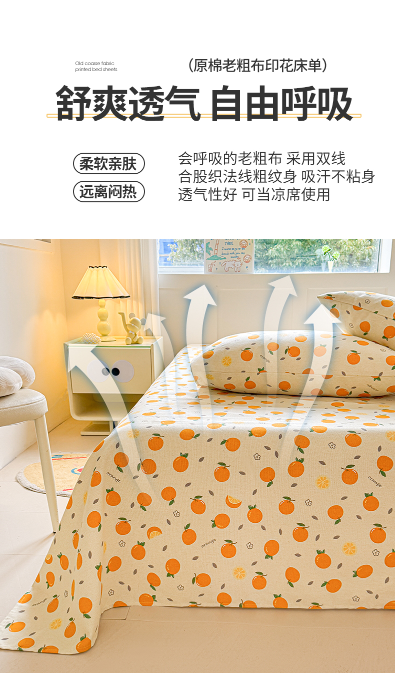 • 91家纺网 家纺一手货源 找家纺 晓时候 2025原棉老粗布床单凉席三件套软凉席子单床单 小桔子