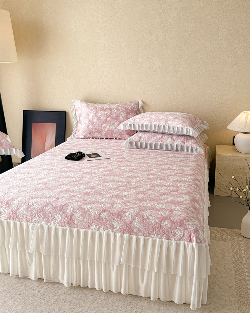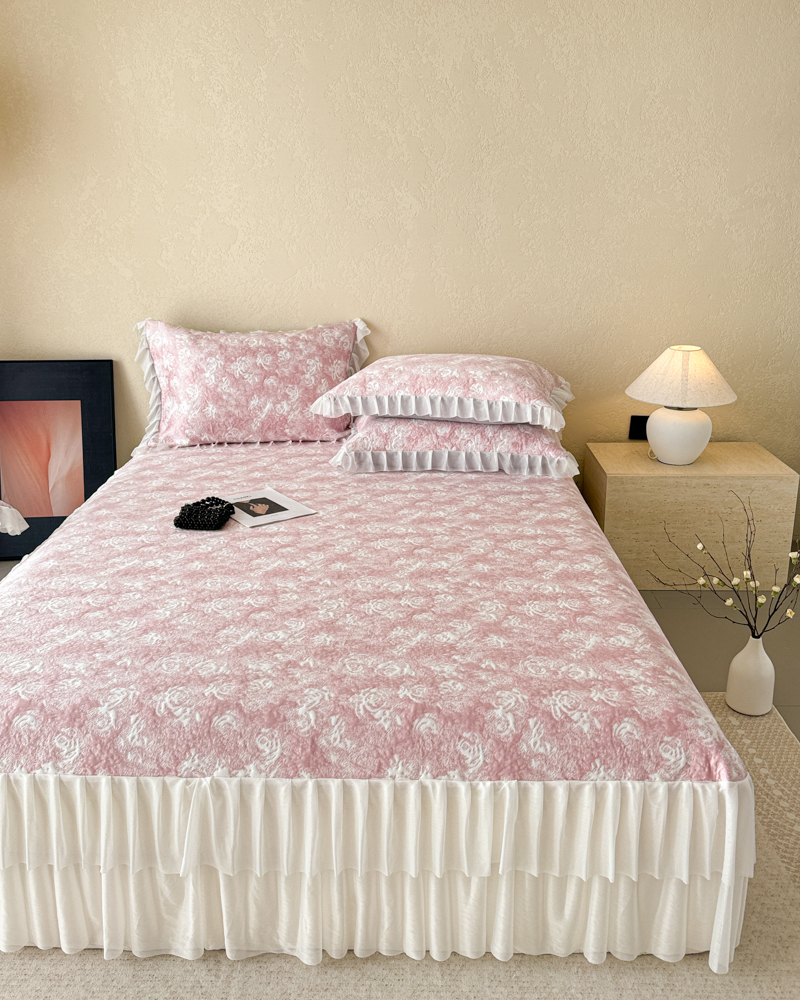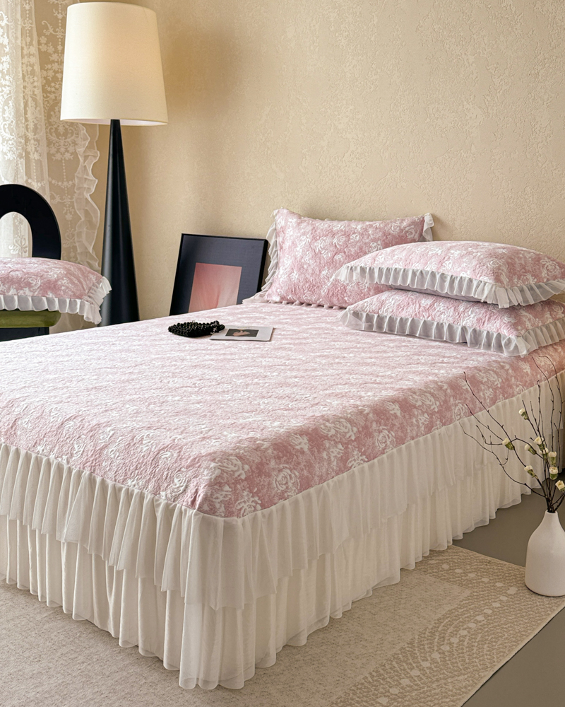 懒猫家纺 2025春夏新款凉感提花洛可可系列床裙款凉席 洛可可-粉