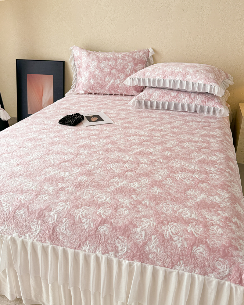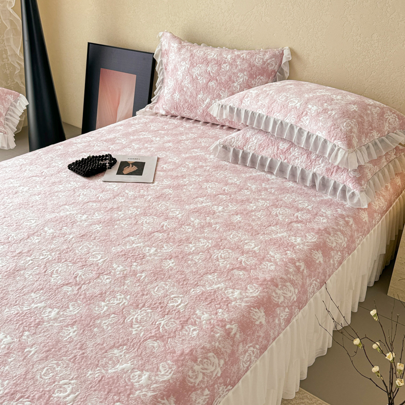 商品名称:懒猫家纺 2025春夏新款凉感提花洛可可系列床裙款凉席 洛可可-粉