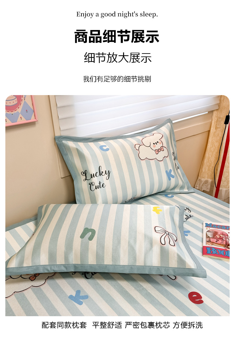 商品名称:慕尚家纺 2025新款600D小清新凉感冰丝凉席三件套 蝴蝶结狗