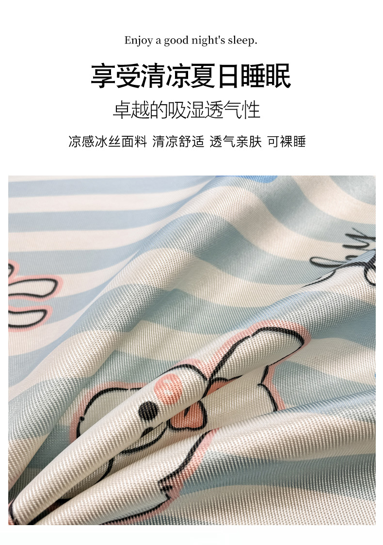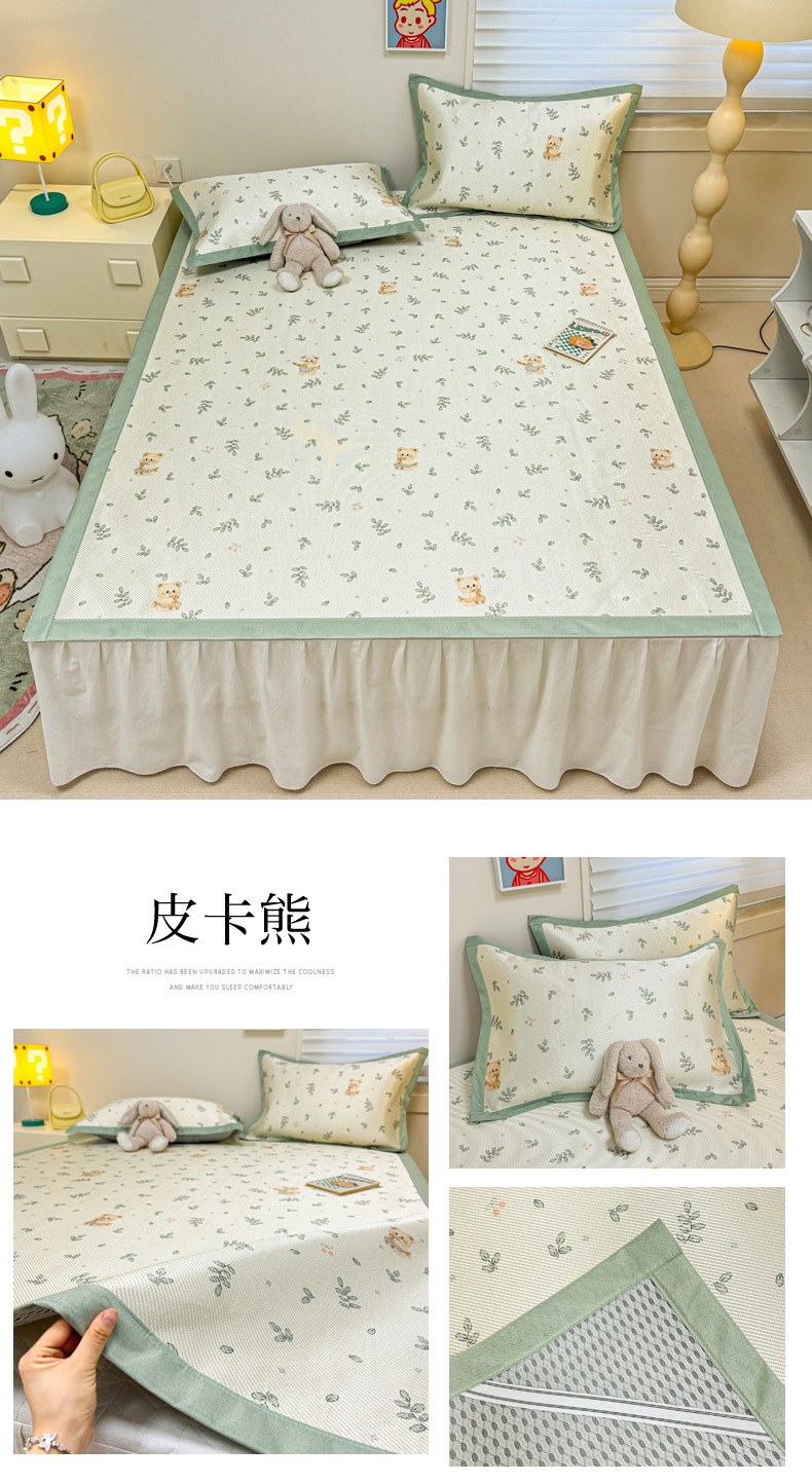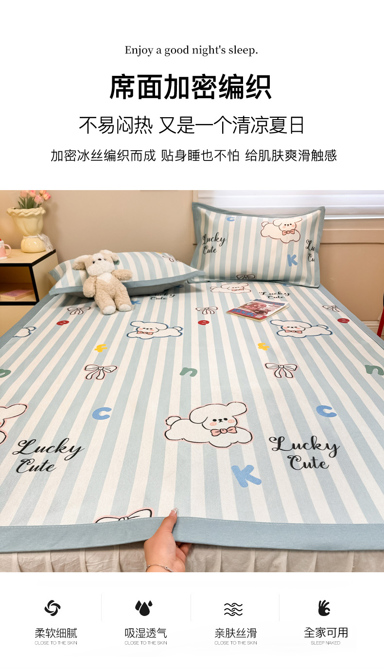 慕尚家纺 2025新款600D小清新凉感冰丝凉席三件套 蝴蝶结狗