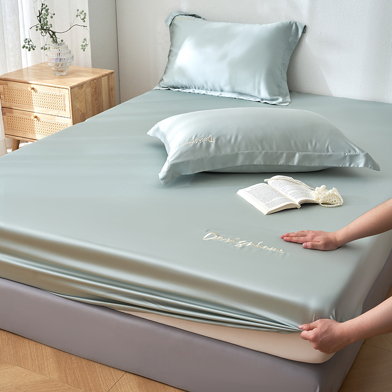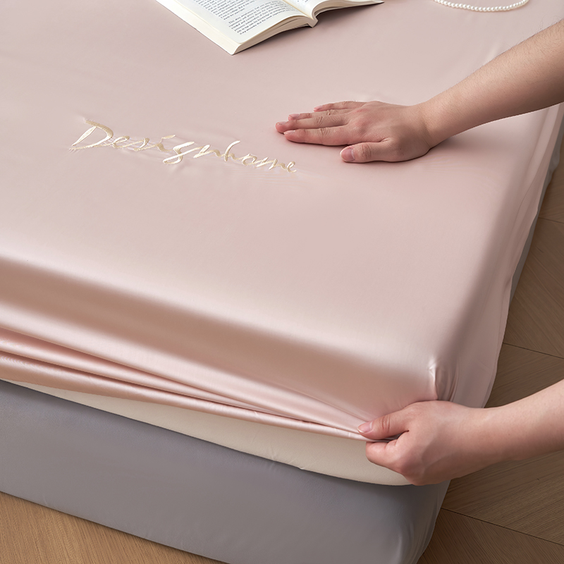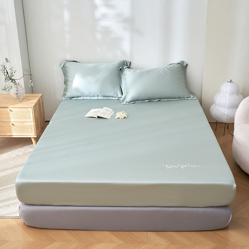 黛舒家居 2025新款60S兰精天丝纯色简绣单床笠 玄灰