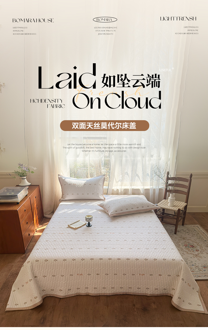 • 91家纺网 家纺一手货源 找家纺 美优兰 2025春夏新款双面天丝高温砂洗床盖 年年有余