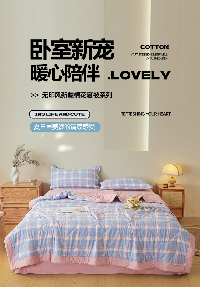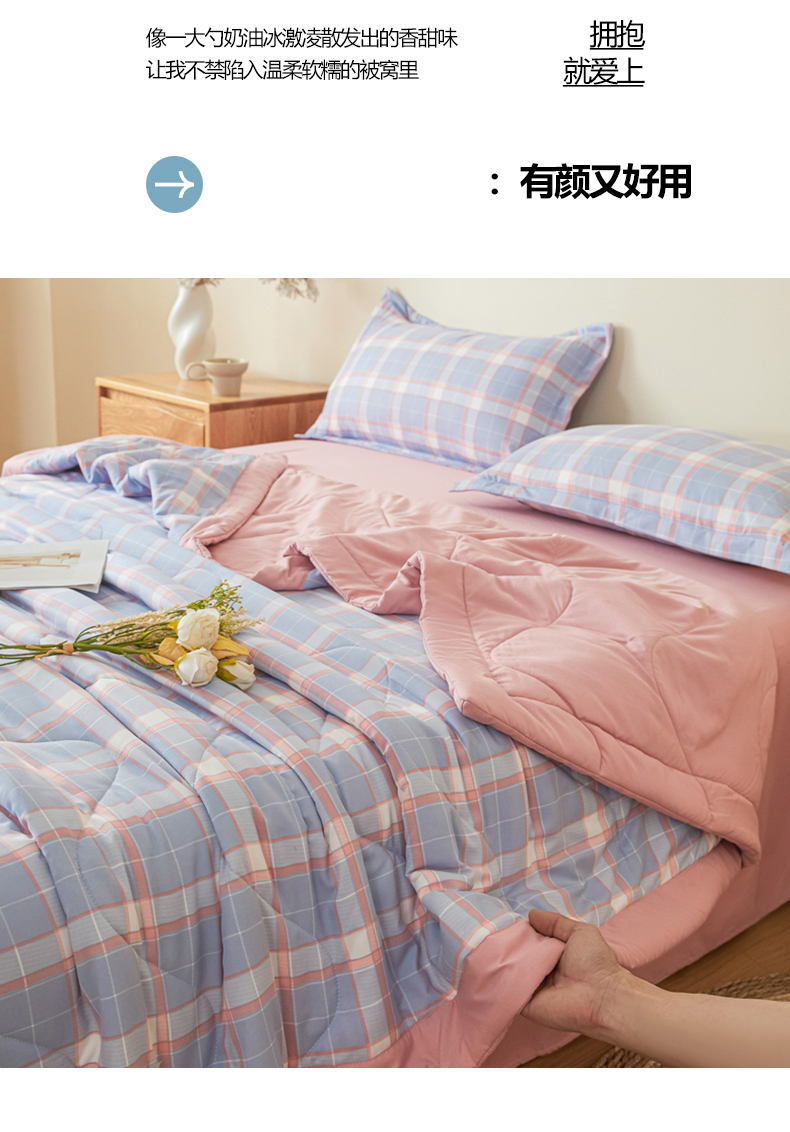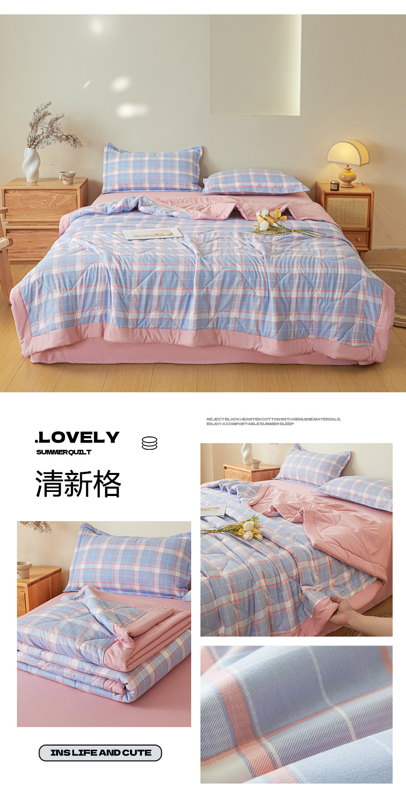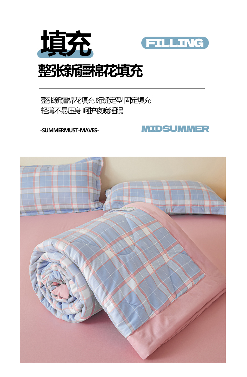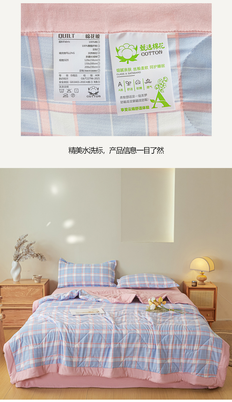 商品名称:2025新款A类色织新疆棉抗菌夏被棉花被 清新格