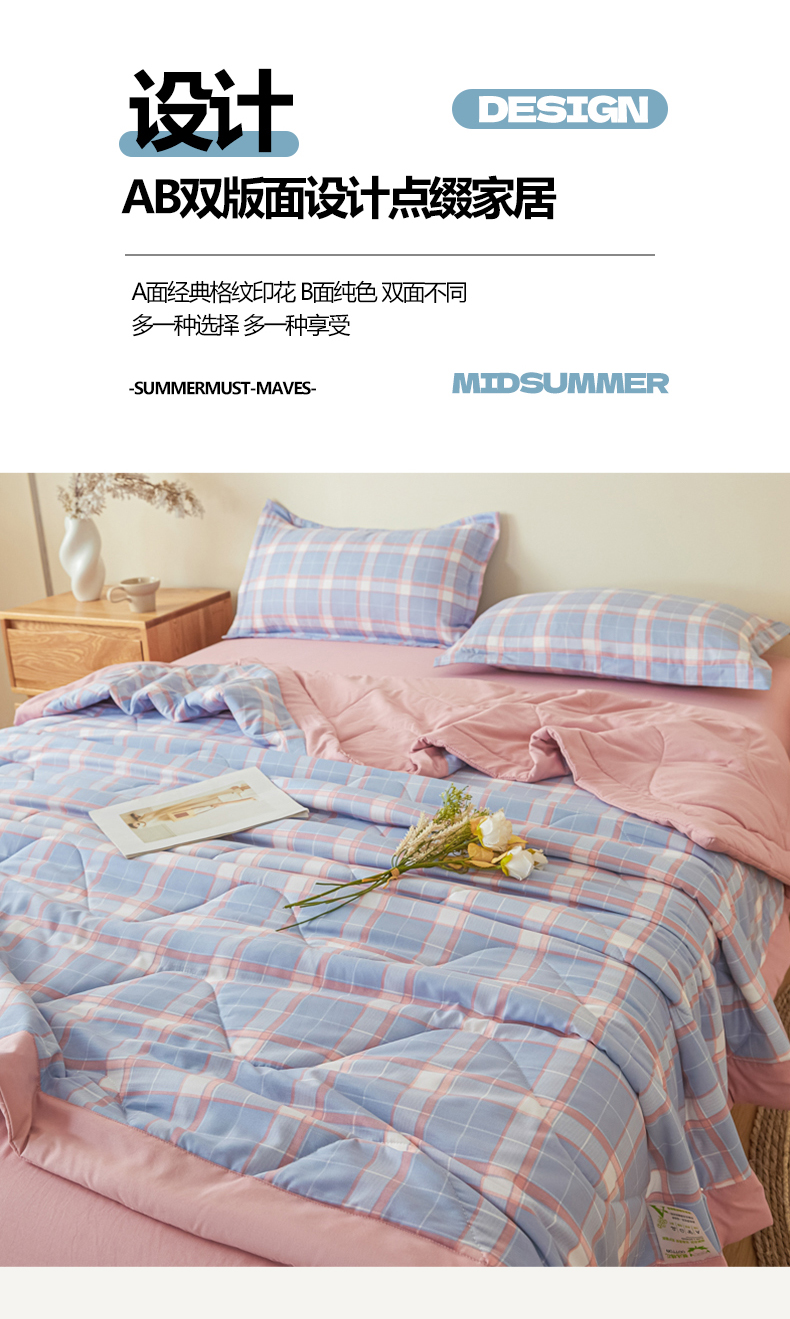 2025新款A类色织新疆棉抗菌夏被棉花被 清新格