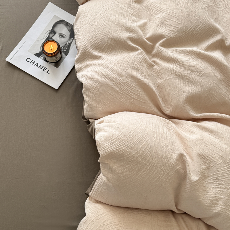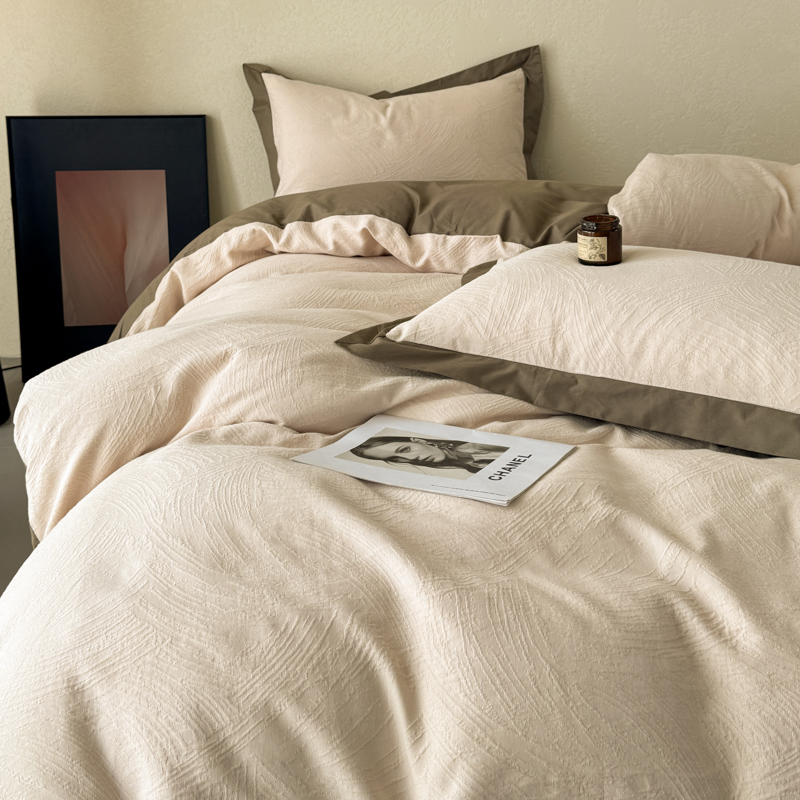 商品名称:若未家居 LOVEWE HOUSE 2025新款50S色织空气层水洗大提花全棉四件套 流光 燕麦米