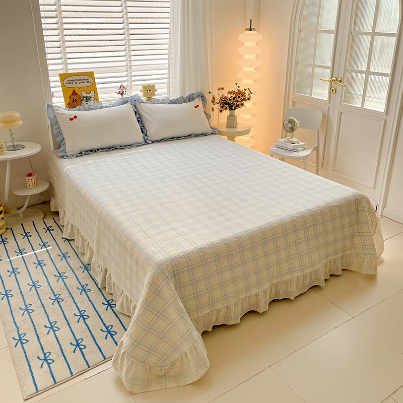 (总)麦朵家居2025新款双层纱针织棉床盖款四件套,多彩领结,粉格子,蝴蝶-蓝,蝴蝶-紫,蓝格子,南瓜爱心,紫葡萄