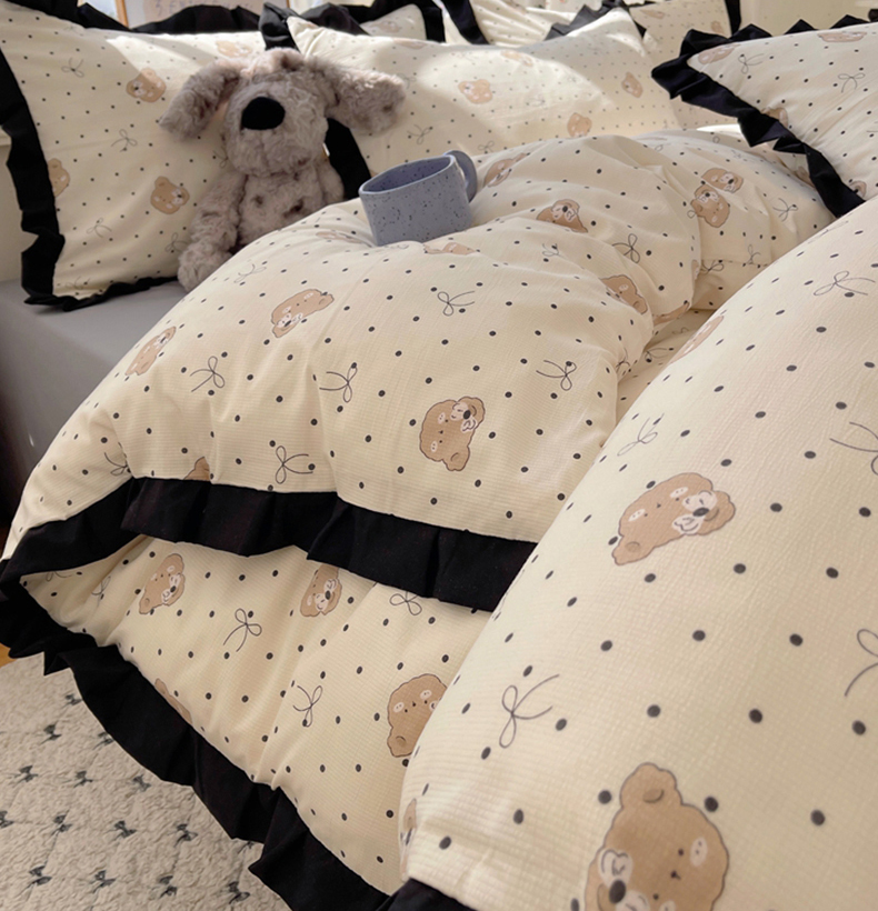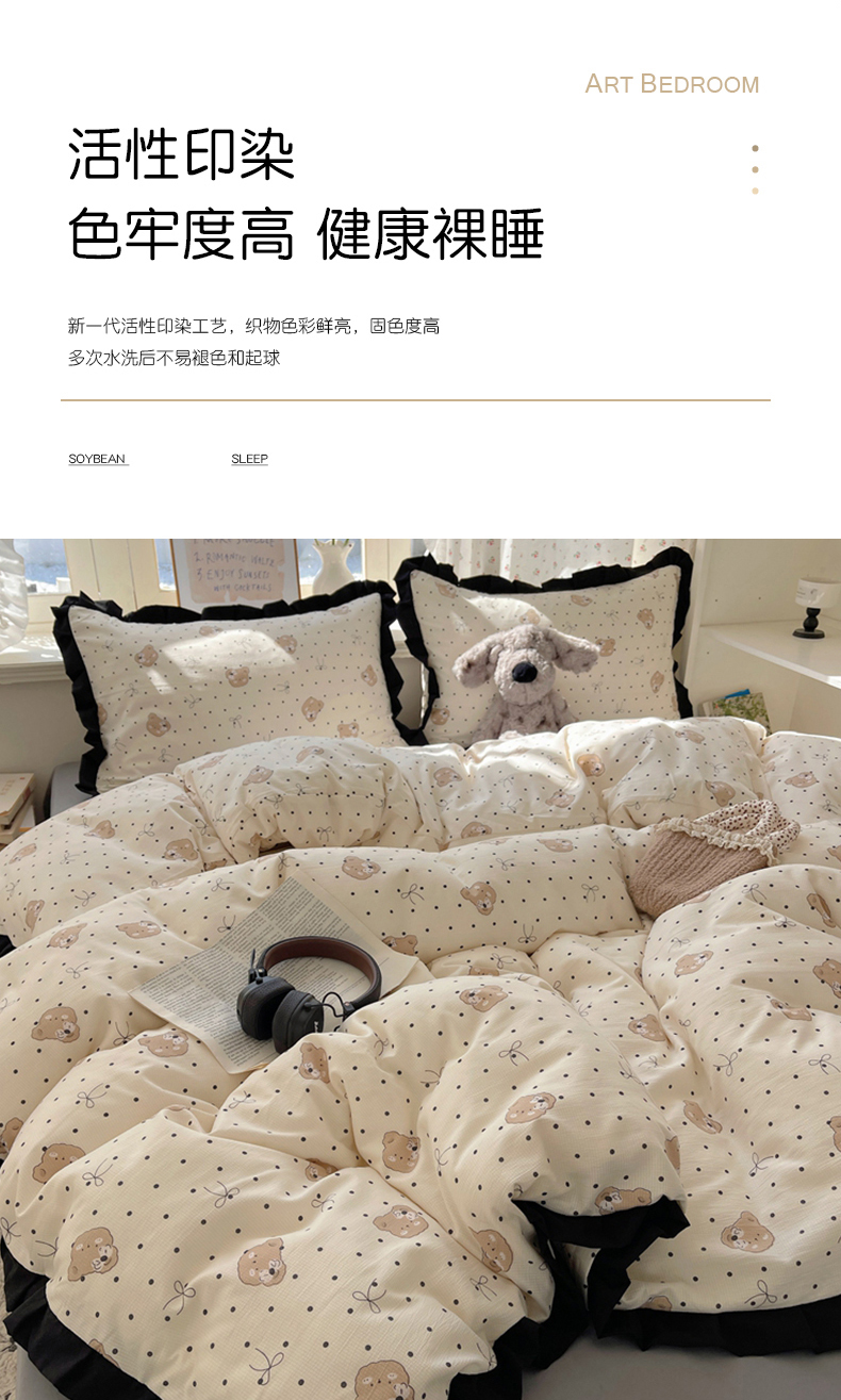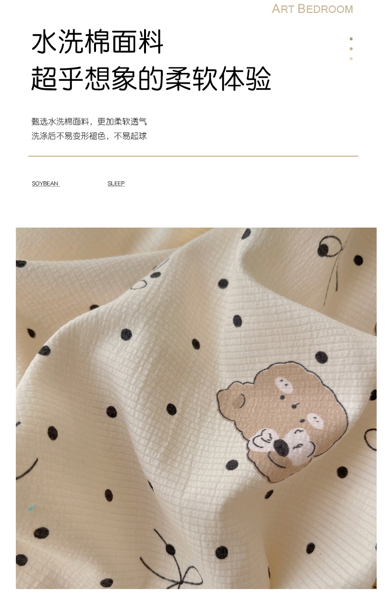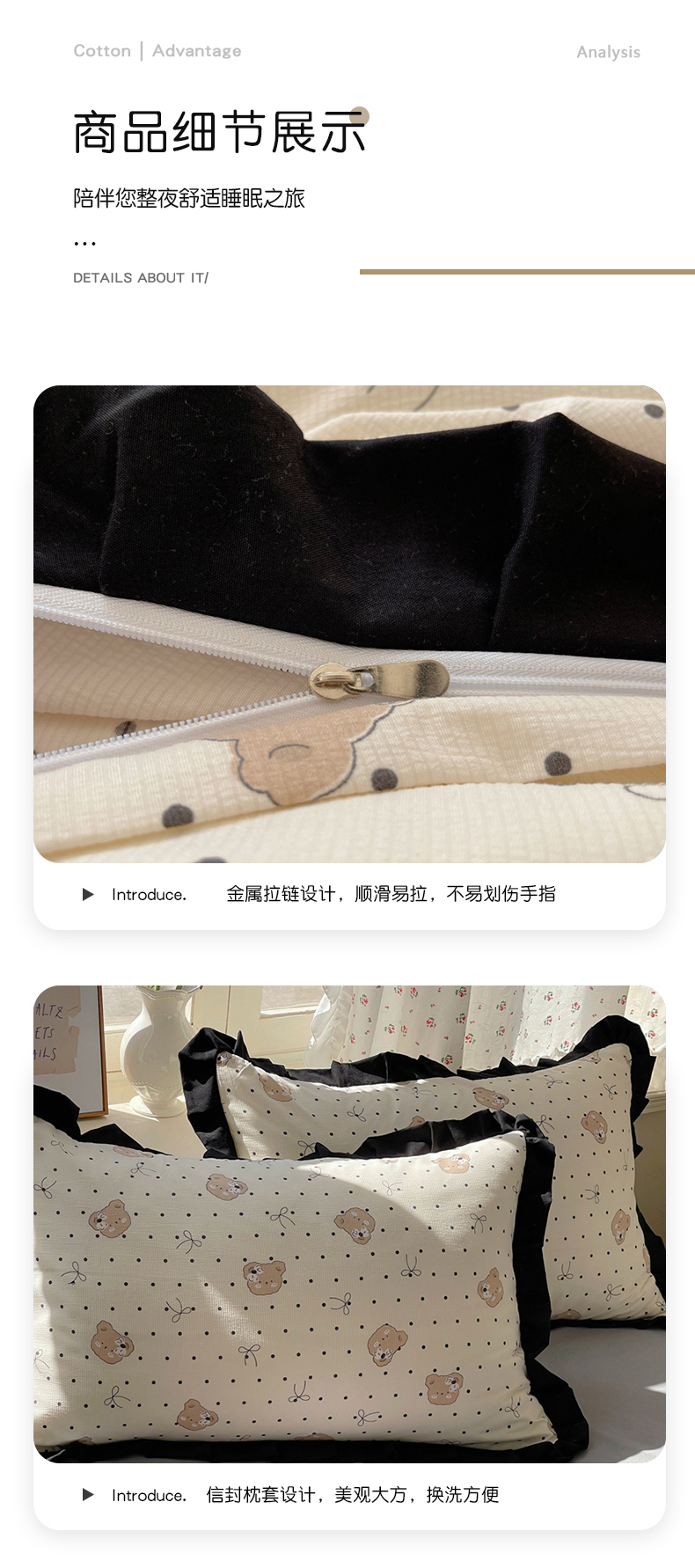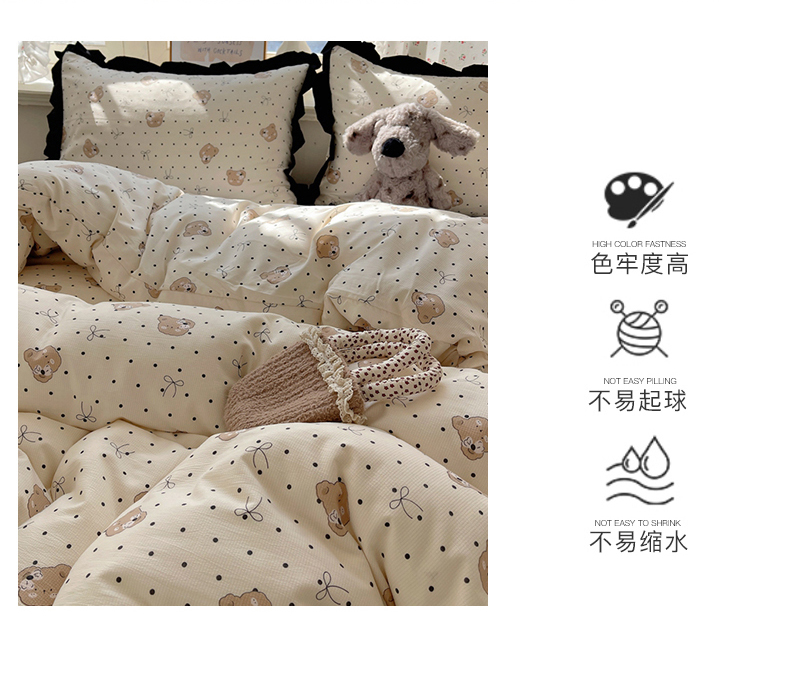 商品名称:红嘴企鹅 2025新款双层纱水洗棉赫本风四件套 赫本风-蝴蝶结小熊