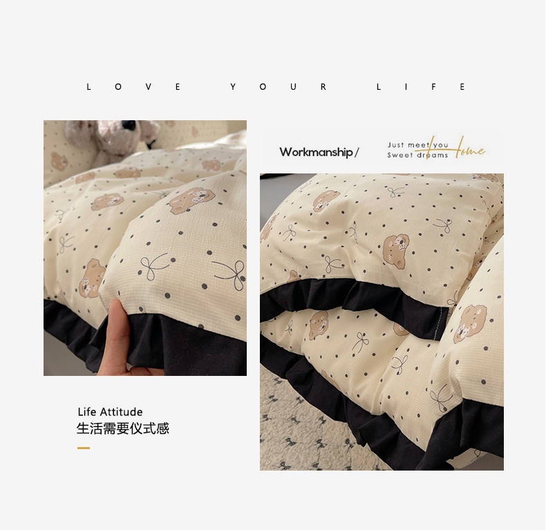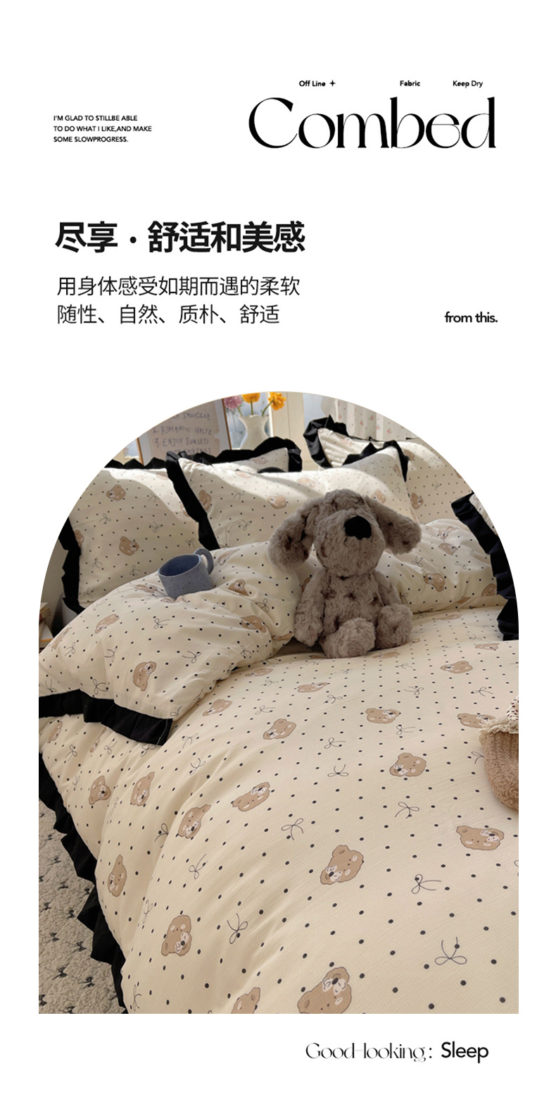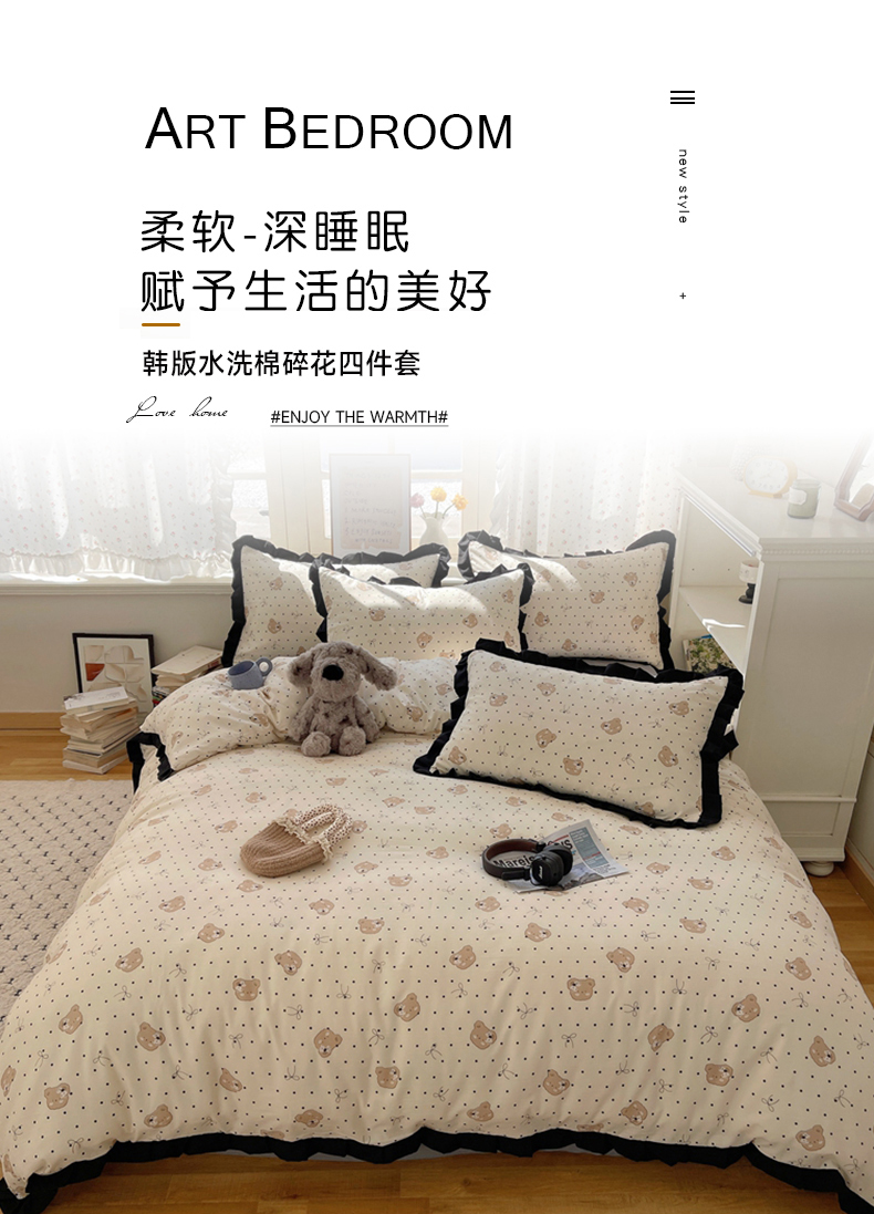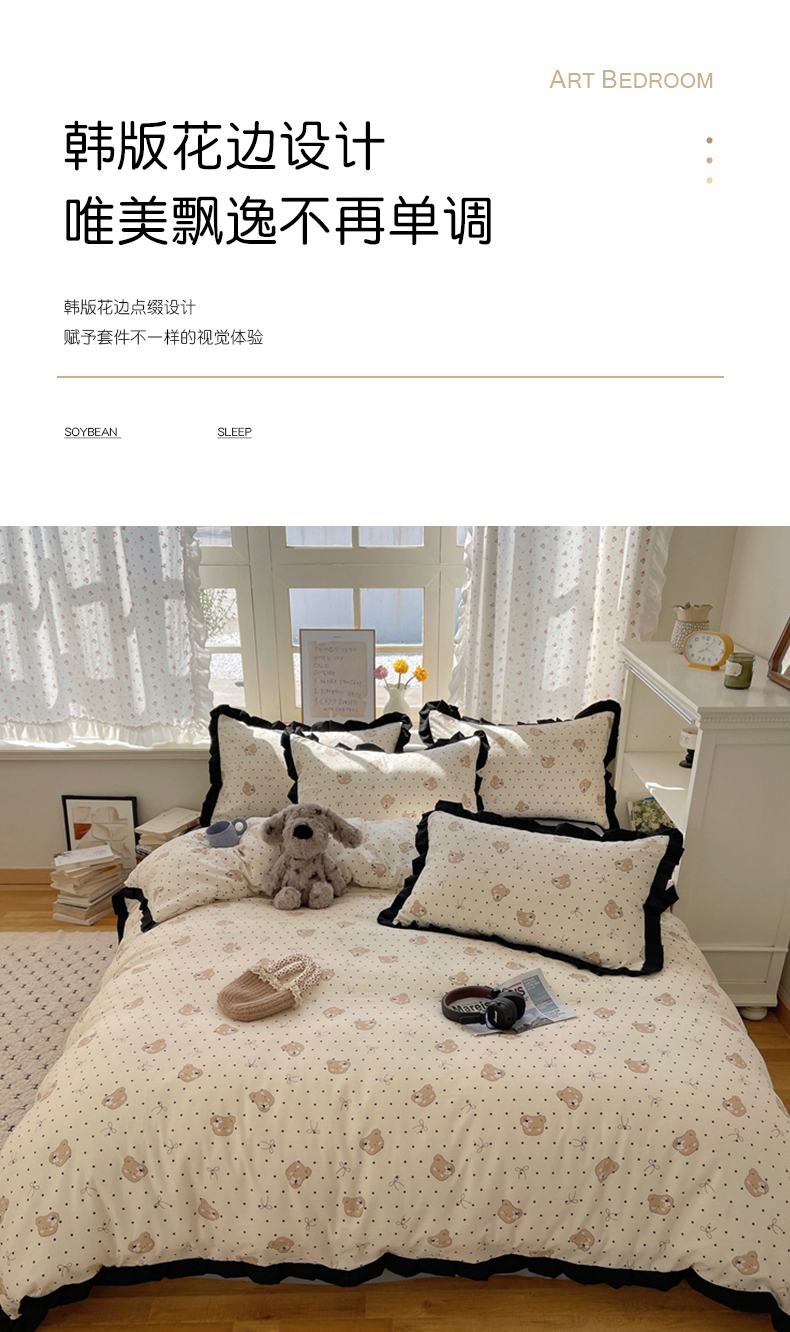 商品名称:红嘴企鹅 2025新款双层纱水洗棉赫本风四件套 赫本风-蝴蝶结小熊