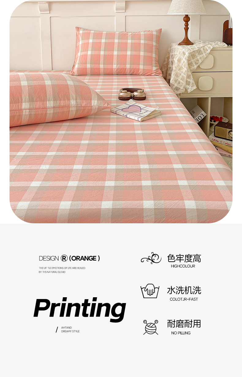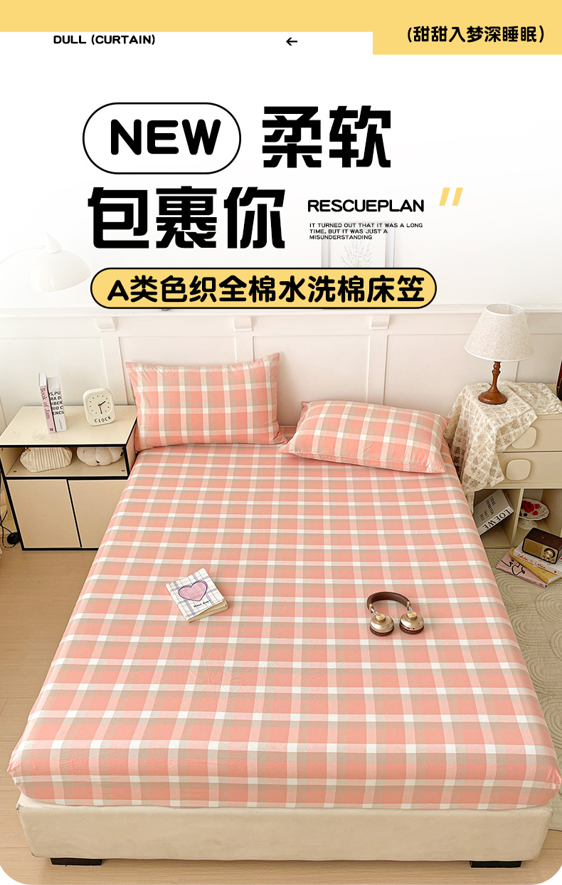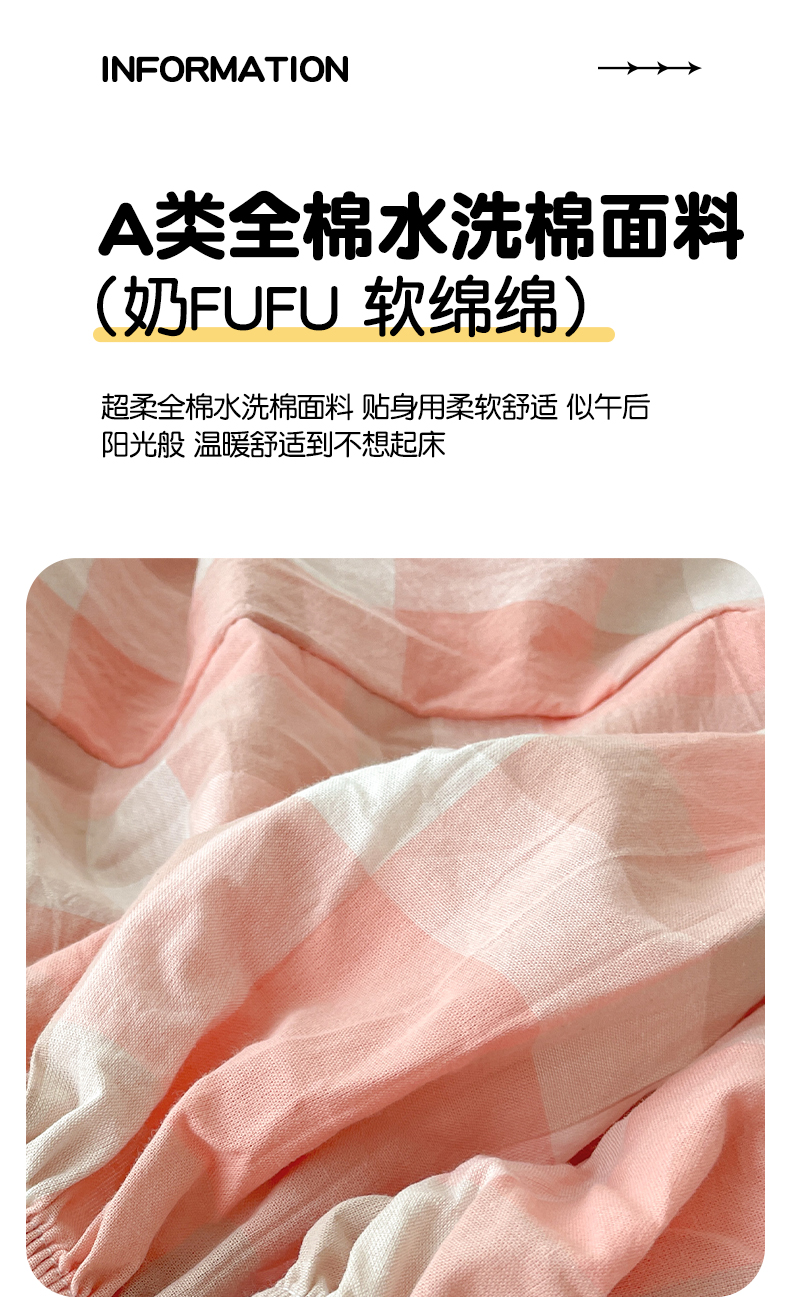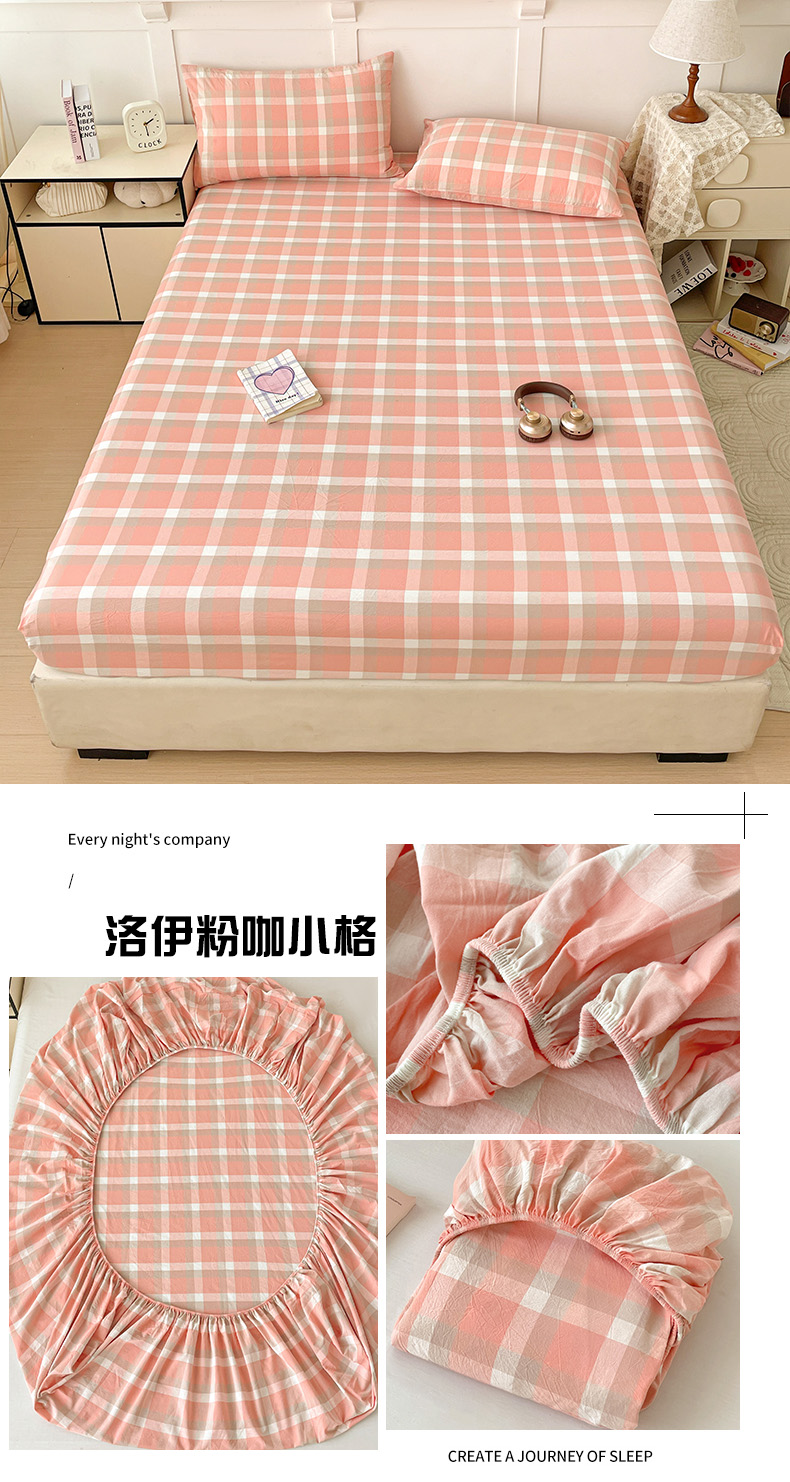 商品名称:2025新款全棉水洗棉套件-单床笠 洛伊粉咖小格