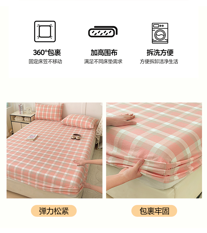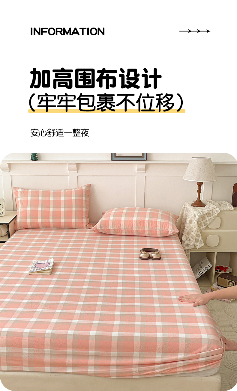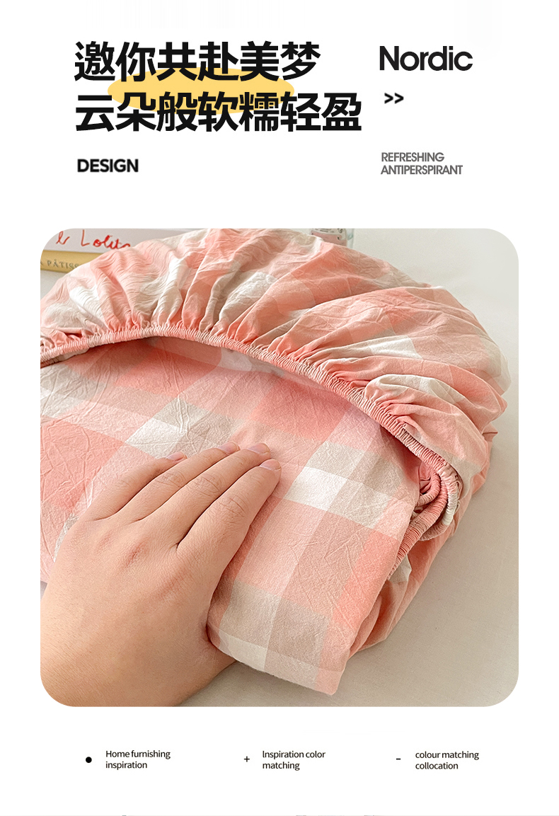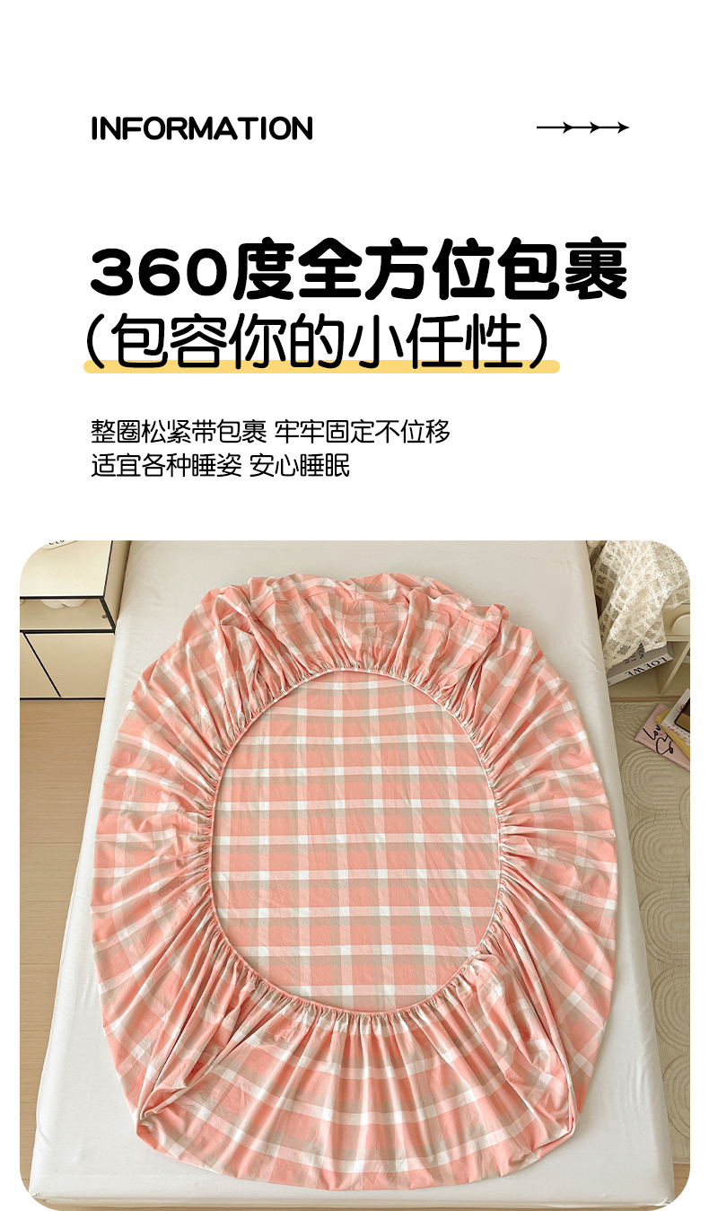 商品名称:2025新款全棉水洗棉套件-单床笠 洛伊粉咖小格