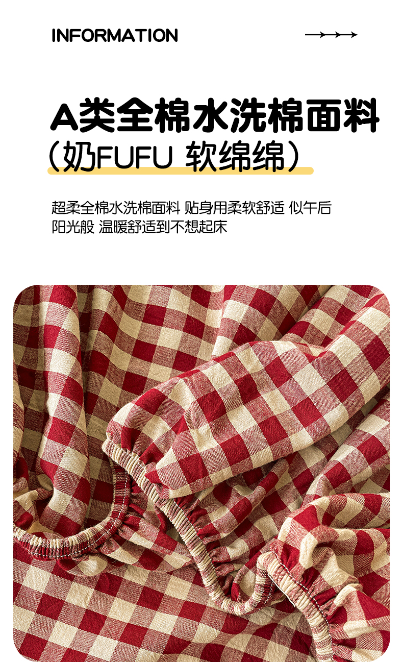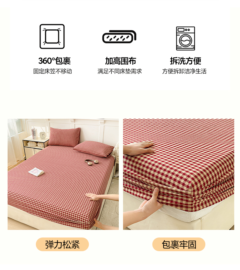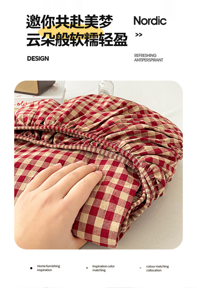 商品名称:2025新款全棉水洗棉套件-单床笠 云素红