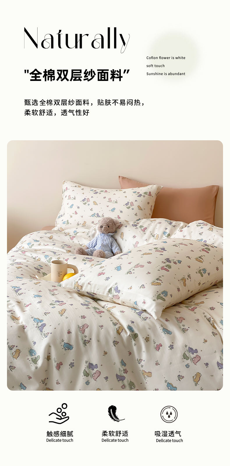 当前位置: 91家纺网 > 商品网购 > 床品套件 > 四件套 > 全棉普通四件套 > 时光里 2025新款A类全棉双层纱卡通风七色系列第二波 啵啵乐园