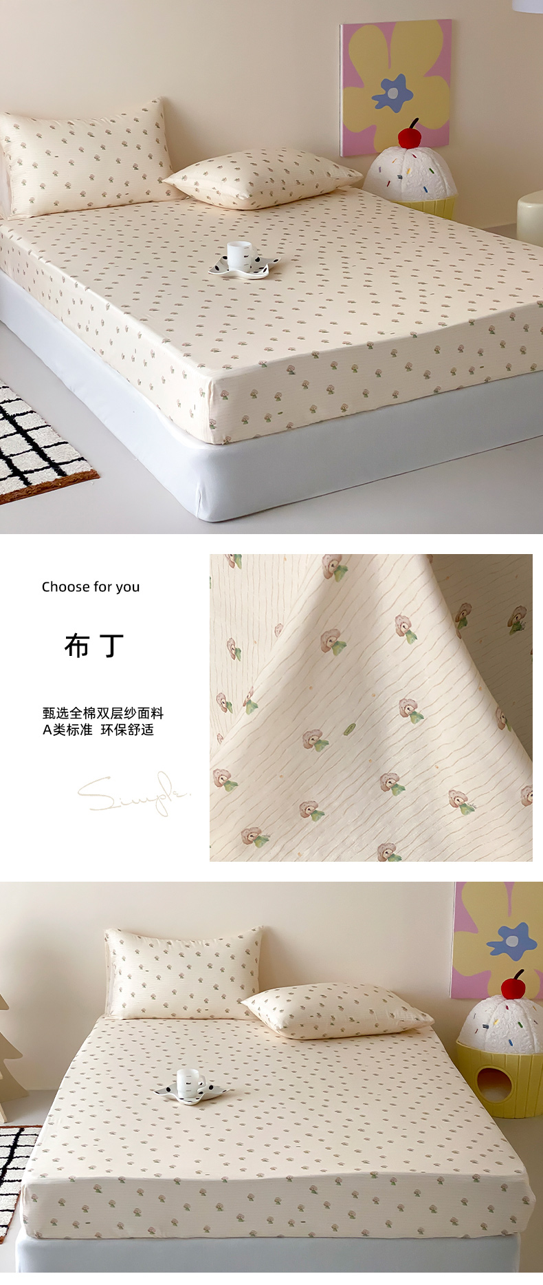(总)时光里 2025新款双层纱系列卡通风床单,豹豹妮,啵啵乐园,布丁,可艾,萌宠宝宝-绿,如甜初梦,甜品屋-棕,小兔乖乖,竹汐恋,卡通风集合图