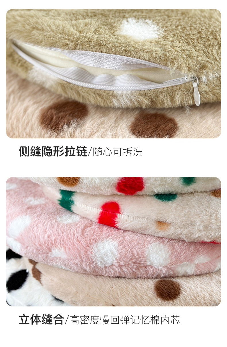 商品名称:美茉家居 2025新款兔毛绒波点坐垫 黑波白