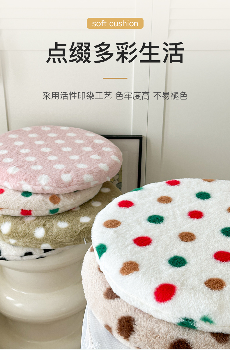 美茉家居 2025新款兔毛绒波点坐垫 黑波白