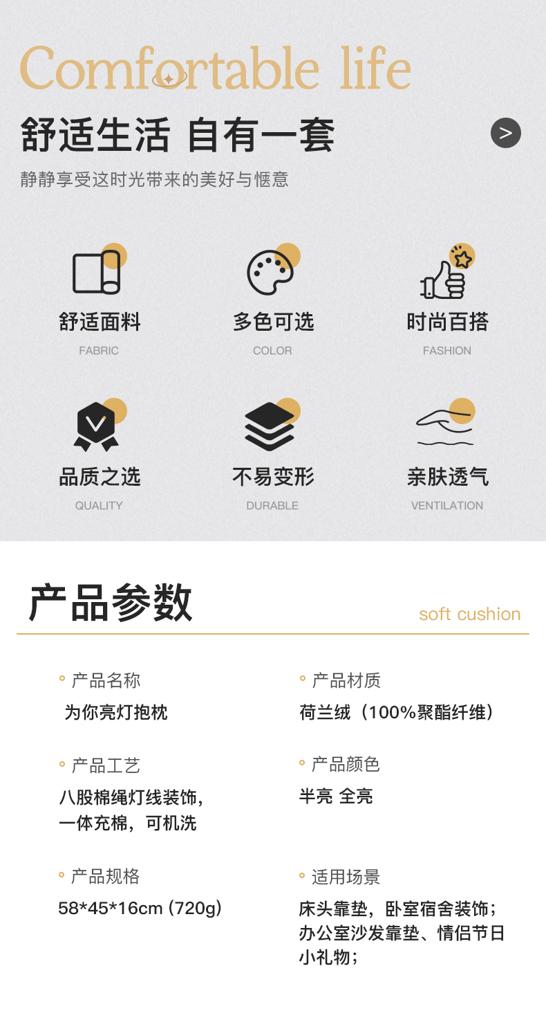 商品名称:美茉家居 为你亮灯(靠垫) 全亮