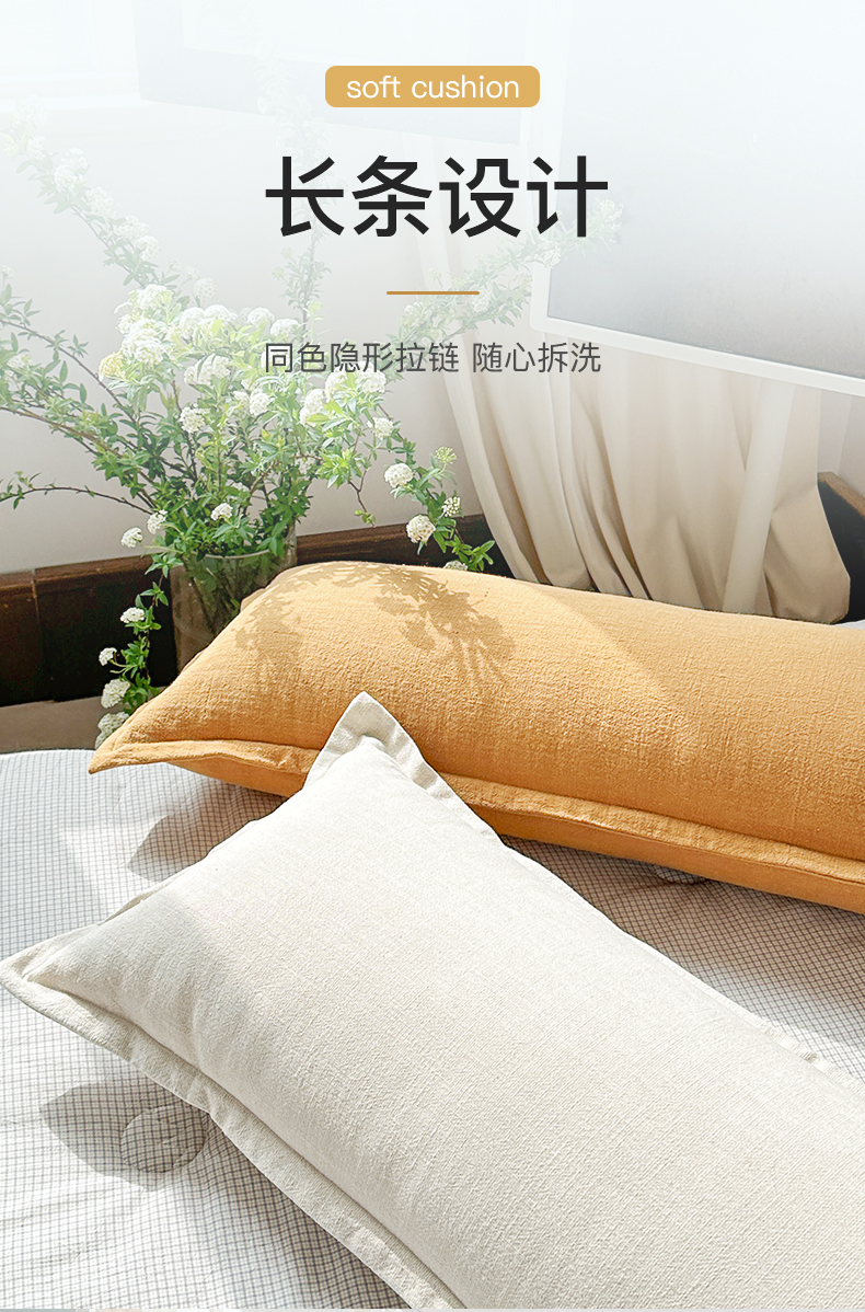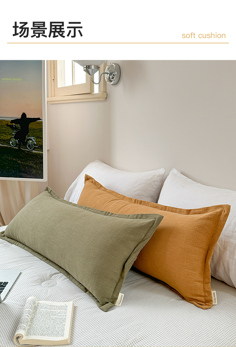 商品名称:美茉家居 2025新款棉麻宽边长枕 摩卡棕