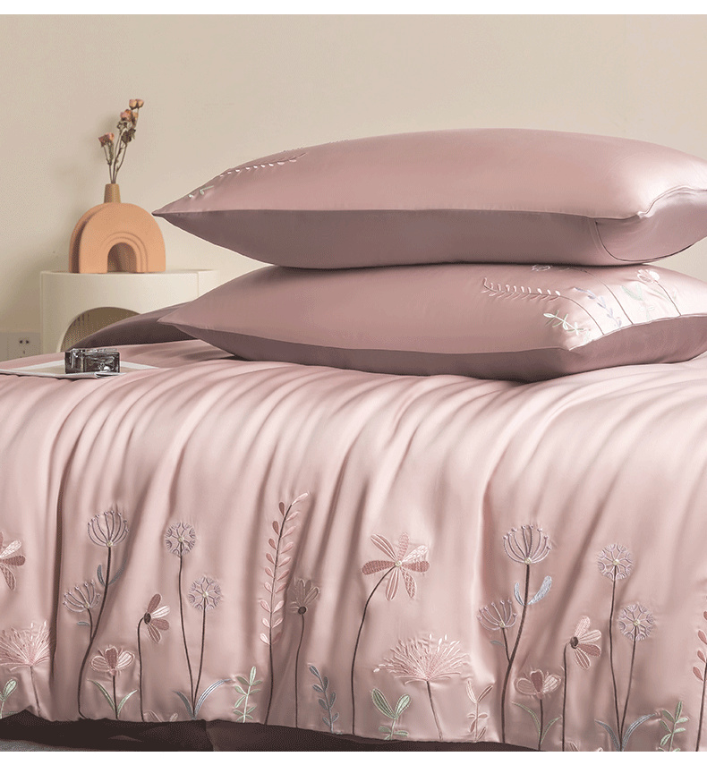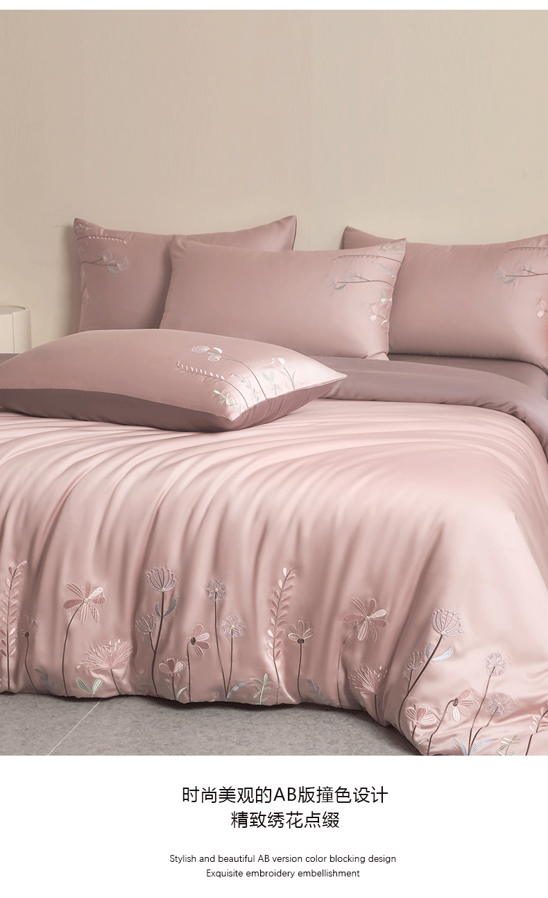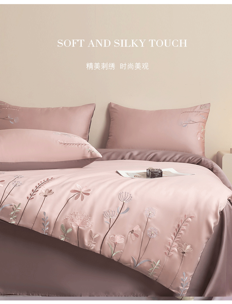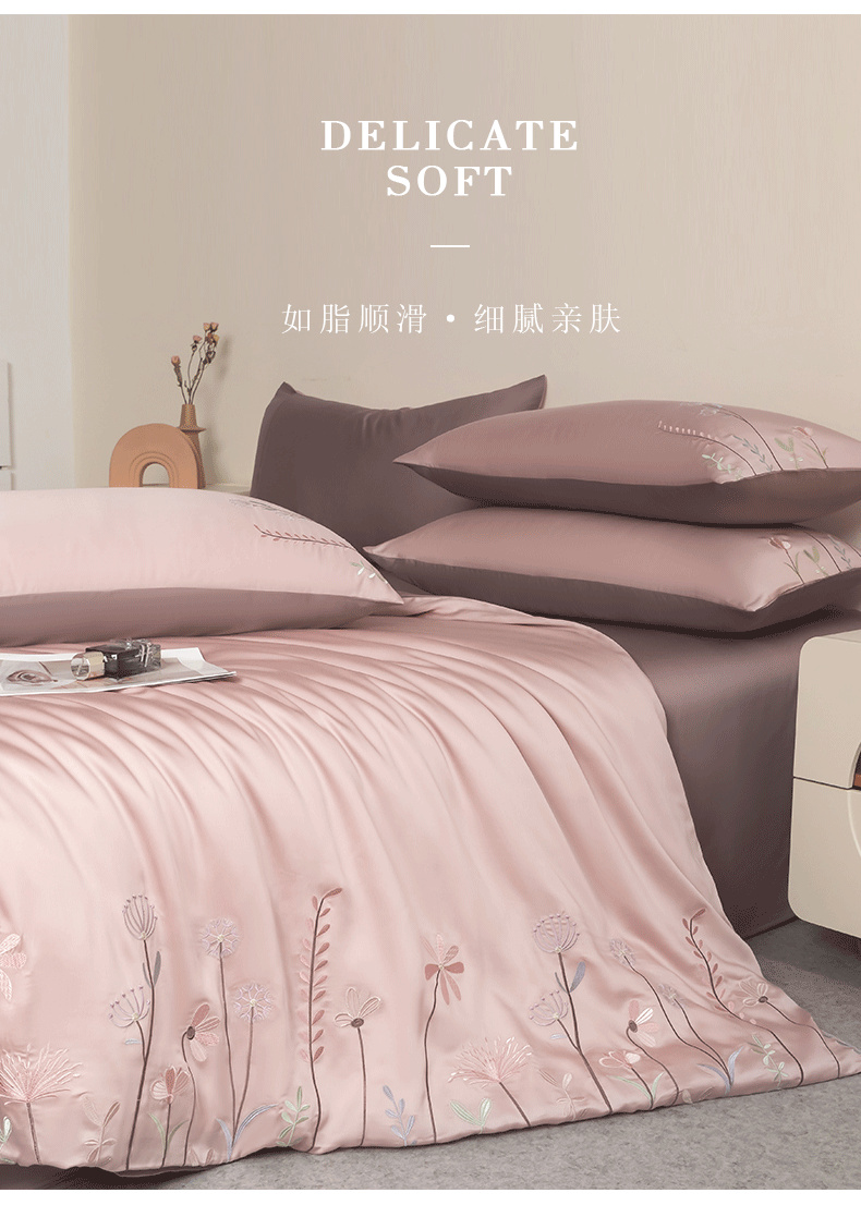 618家纺 2025新款60S100支进口兰精天丝四件套-初夏 天丝初夏粉豆沙