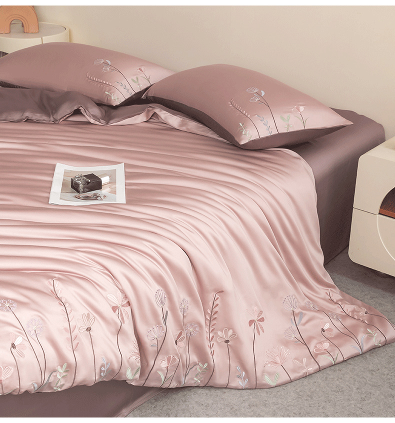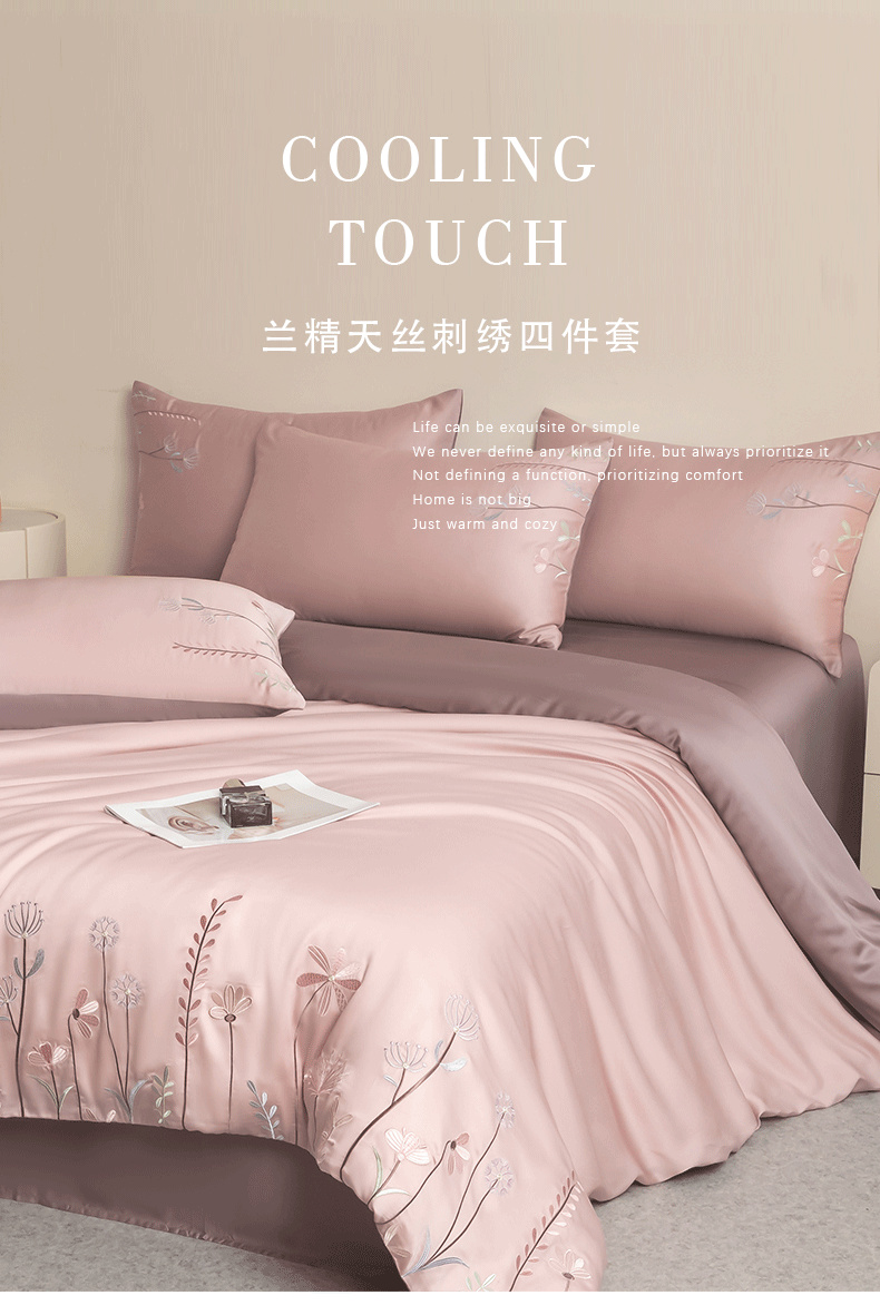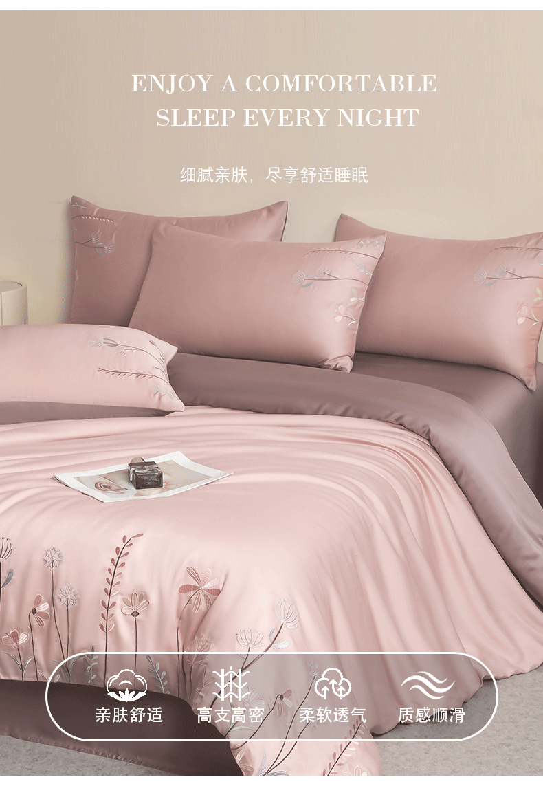 商品名称:618家纺 2025新款60S100支进口兰精天丝四件套-初夏 天丝初夏粉豆沙