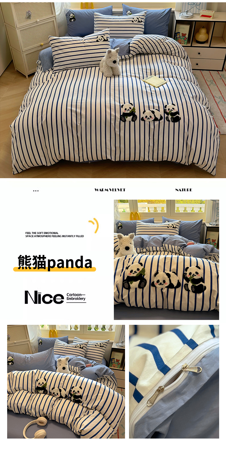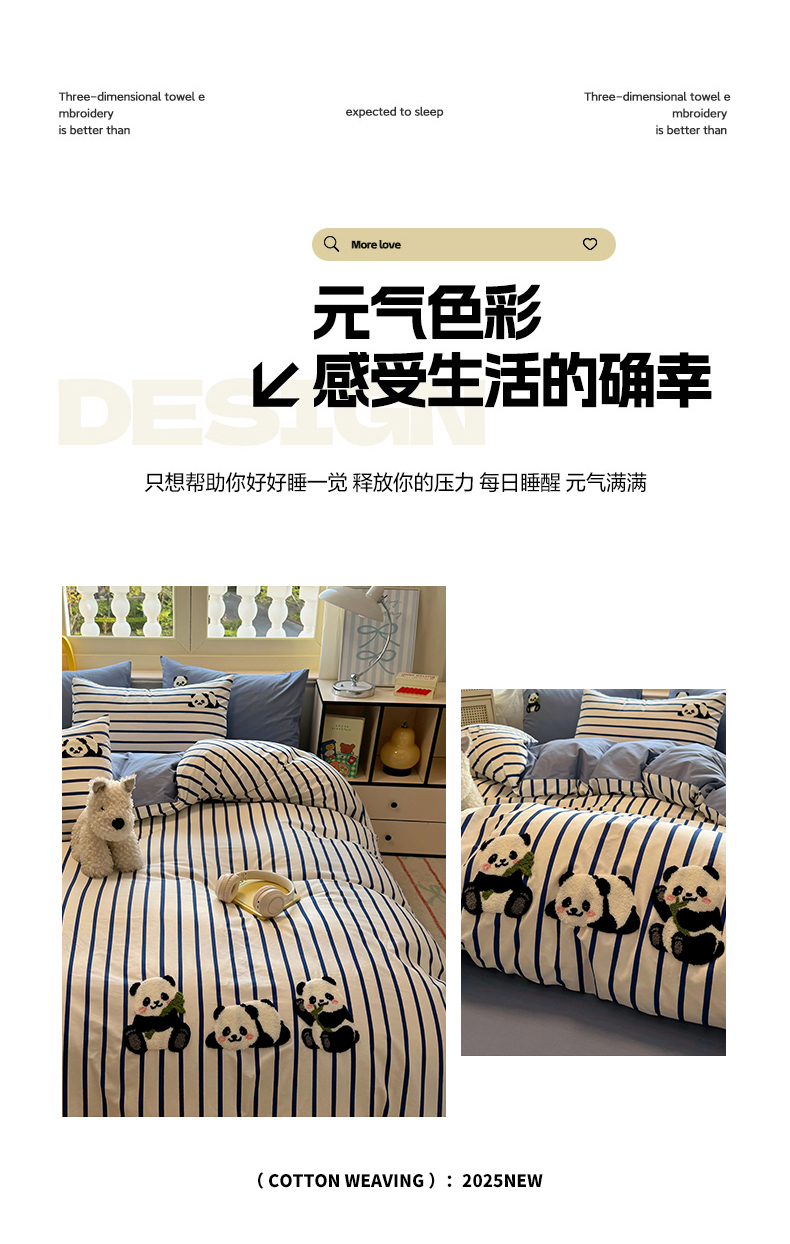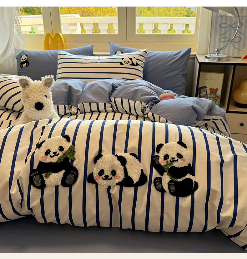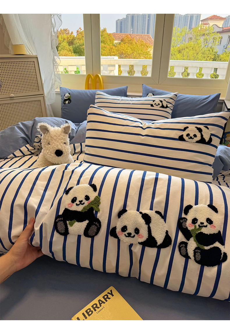 启程2025全棉13372毛巾绣四件套 熊猫panda