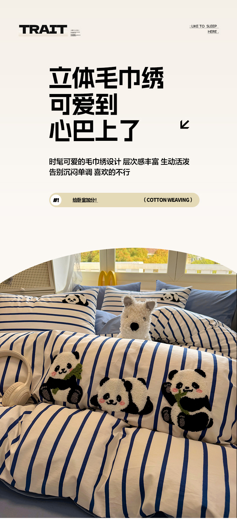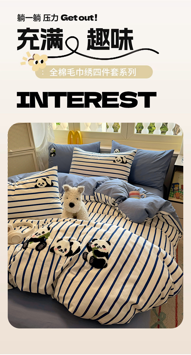 商品名称:启程2025全棉13372毛巾绣四件套 熊猫panda