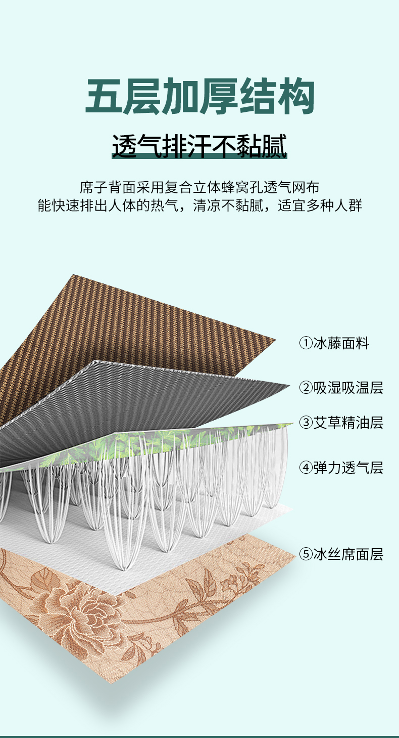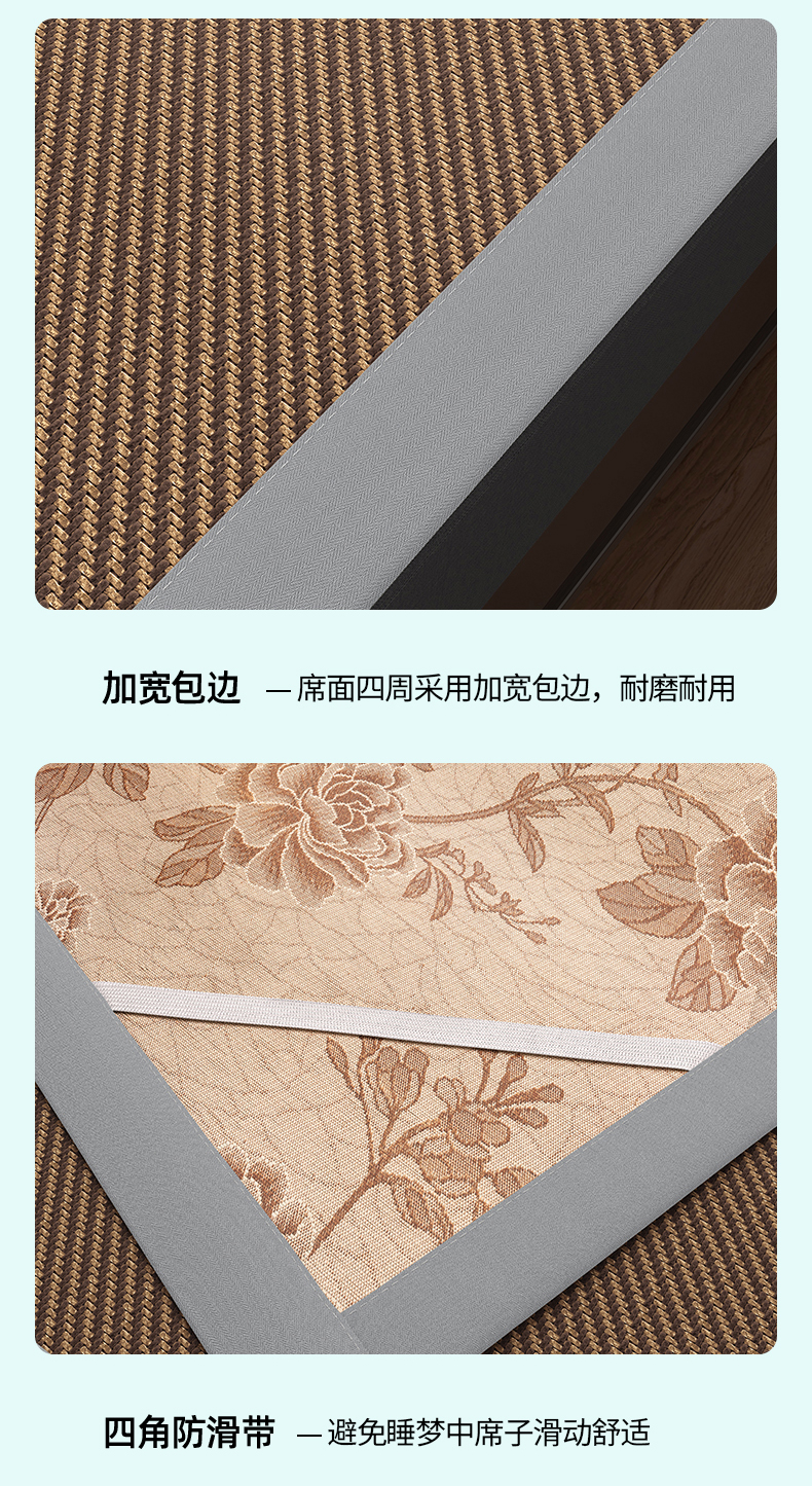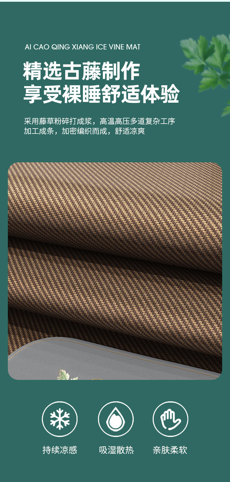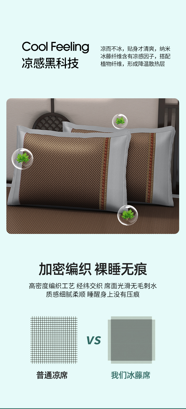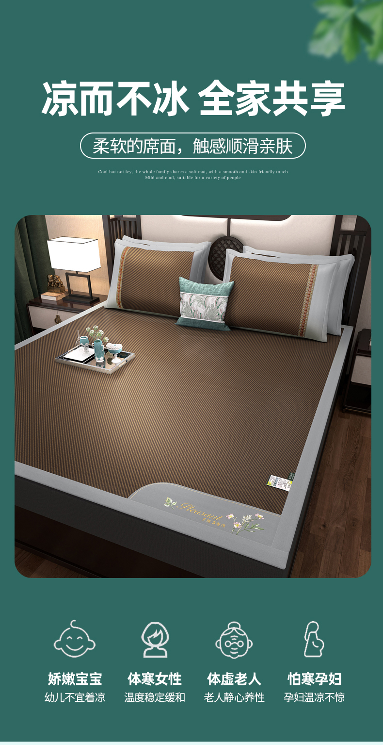 2025新款艾草清香-冰藤双面席系列(新风格)凉席藤席冰藤席竹席空调席草席冰丝席豆豆席乳胶席三件套 艾草清新-冰藤双面席(黑咖)