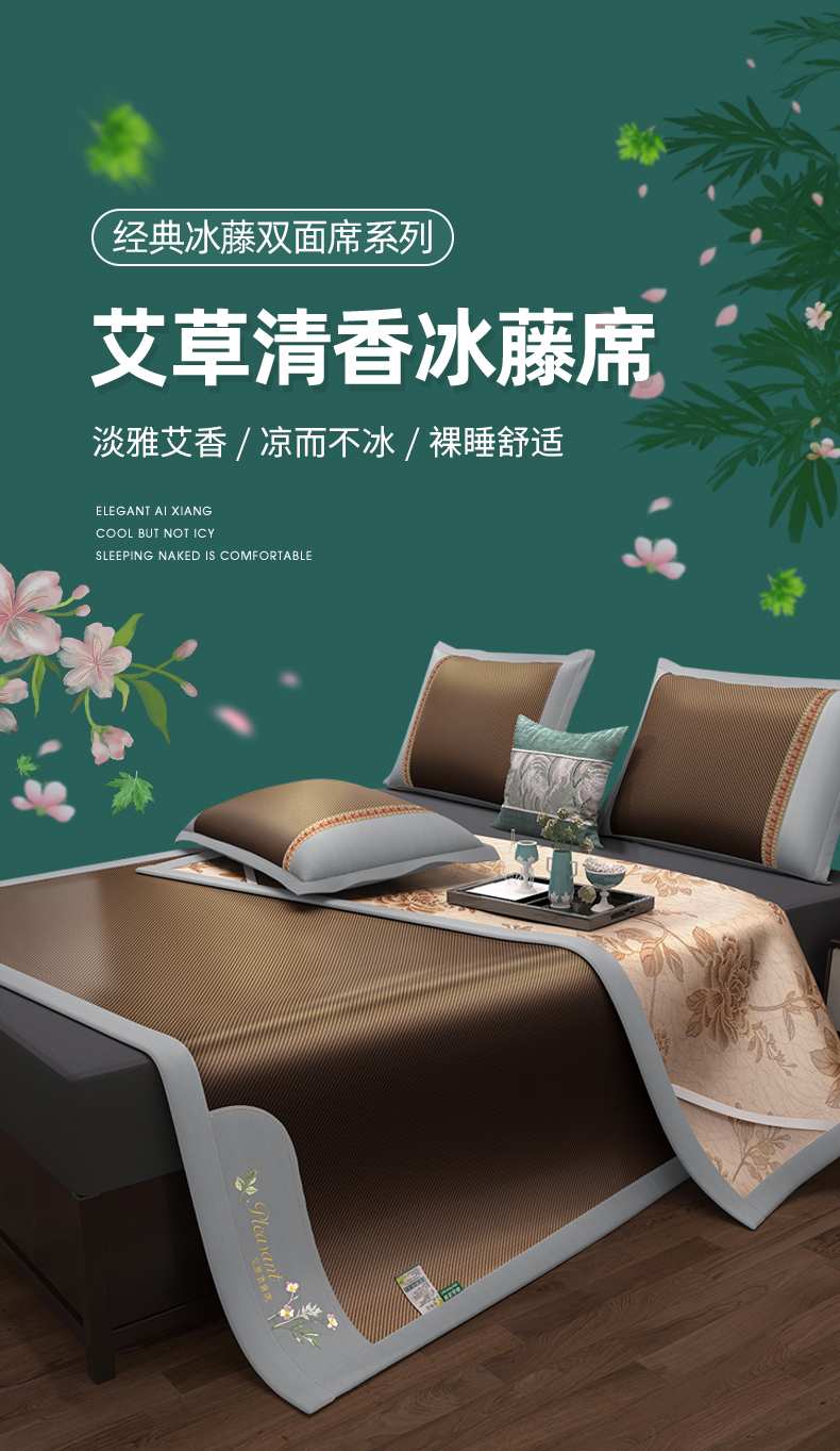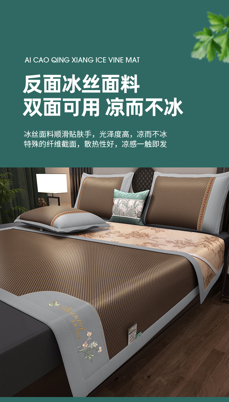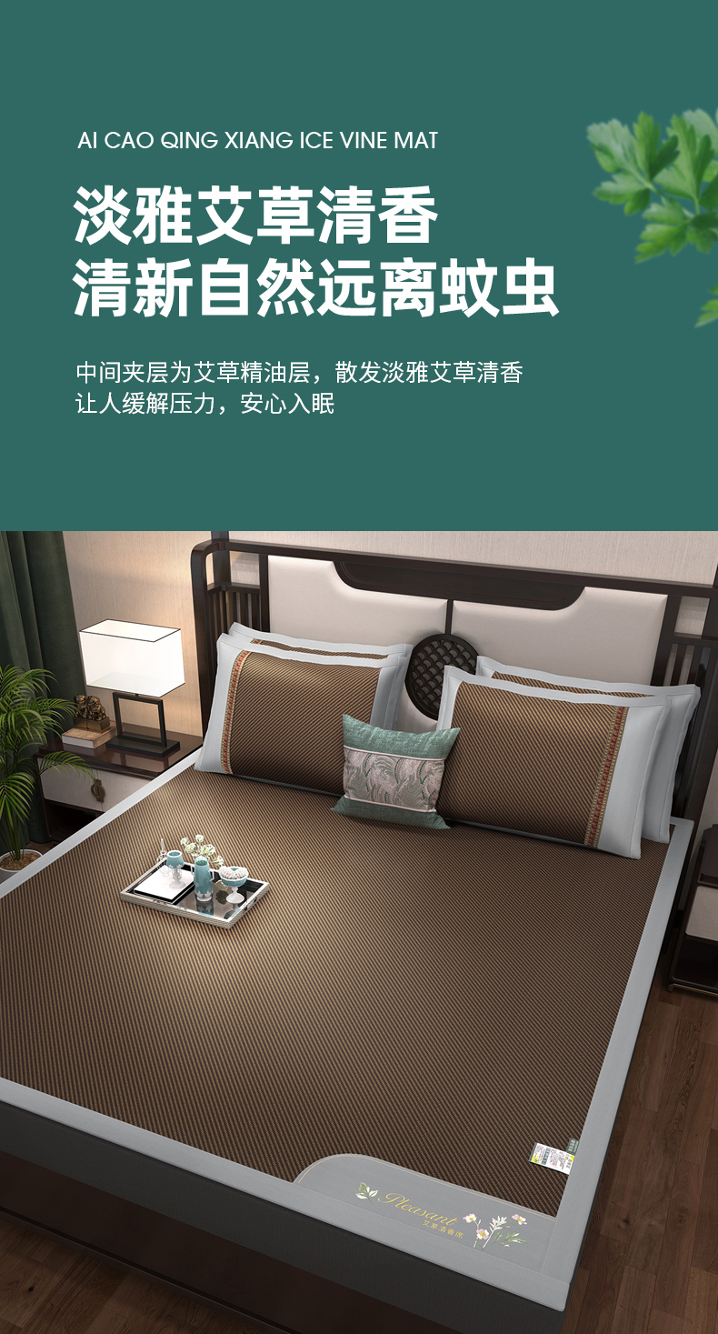 • 91家纺网 家纺一手货源 找家纺 2025新款艾草清香-冰藤双面席系列(新风格)凉席藤席冰藤席竹席空调席草席冰丝席豆豆席乳胶席三件套 艾草清新-冰藤双面席(黑咖)