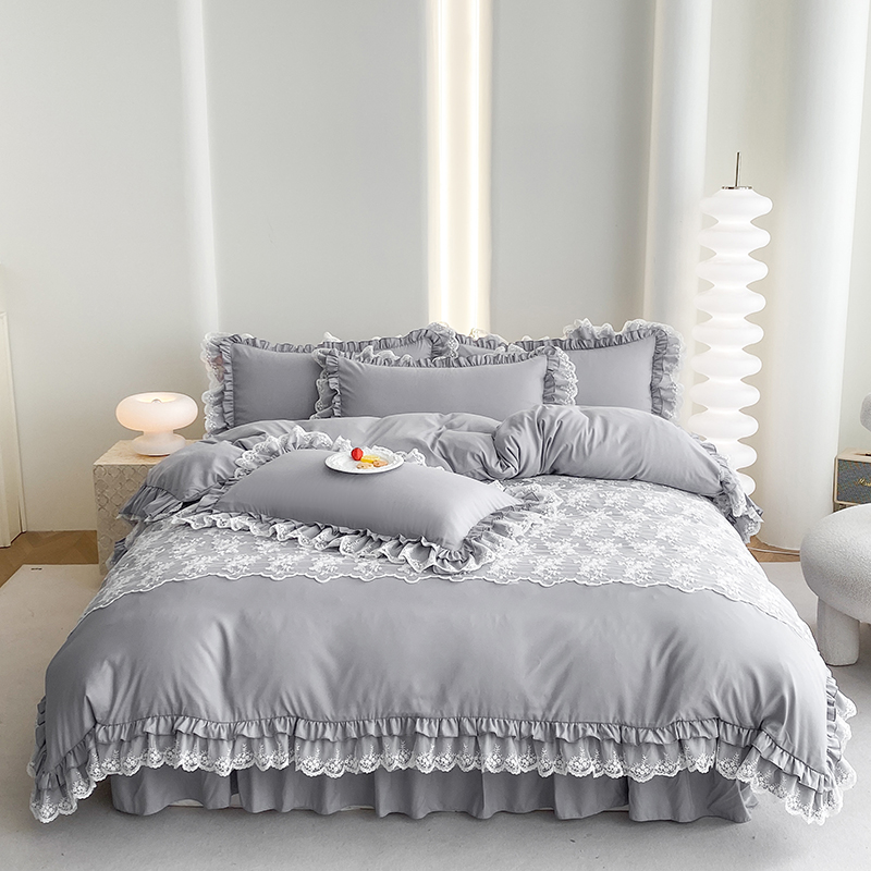 商品名称:乐卧家居 2026新款静奢老钱风精致蕾丝时尚花边繁花-奢华版系列四件套 繁花-奢华版灰色
