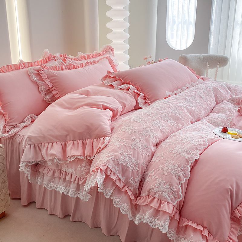 (总)乐卧2026雅韵蕾丝花边手工花卉夏被四件套有花版,海盐蓝有花版,黄油色有花版,兰花色有花版,麦芽灰有花版,甜白色有花版,樱花粉有花版
