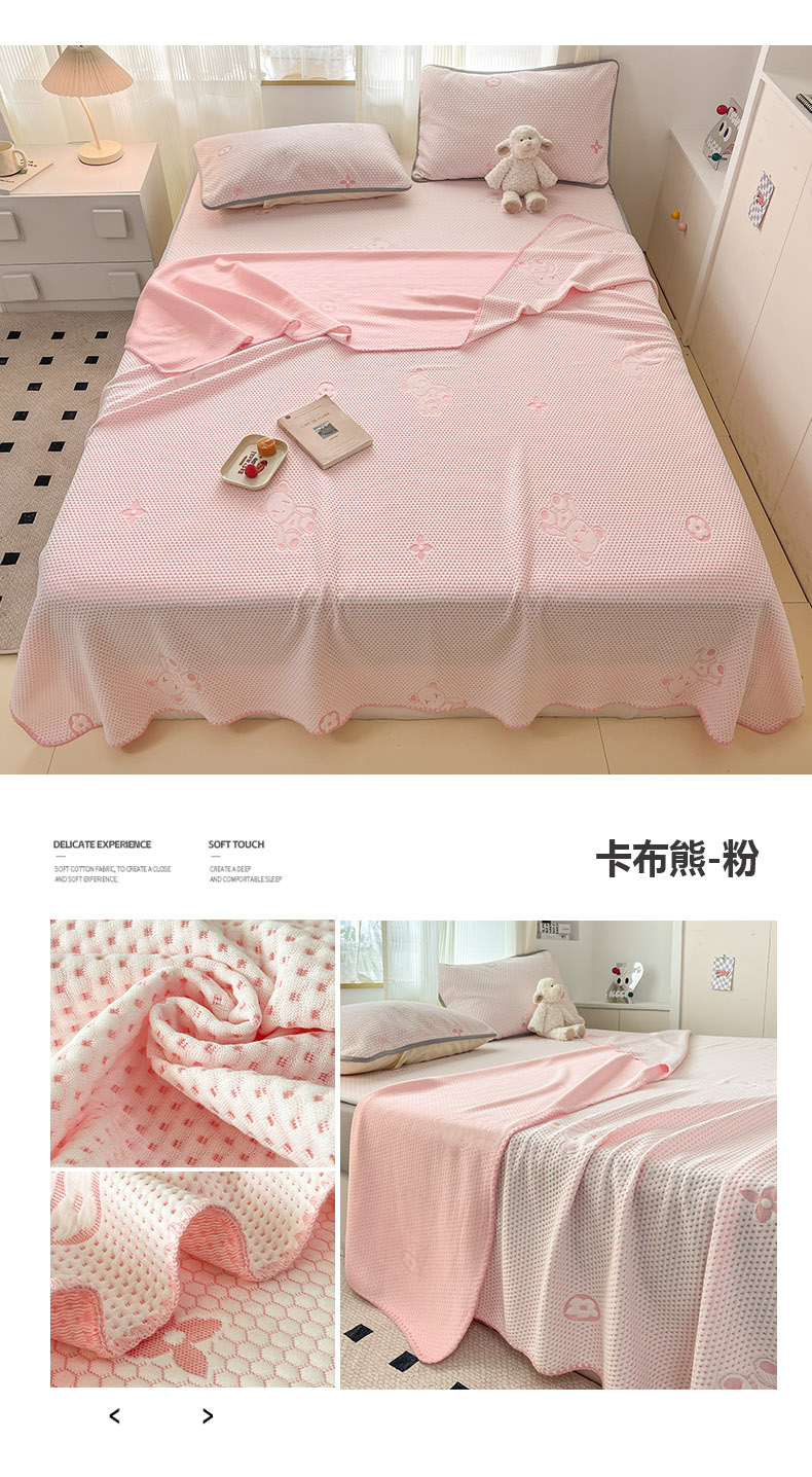 商品名称:新印象 2025新款凉感豆豆夏被套件系列卡布熊-粉