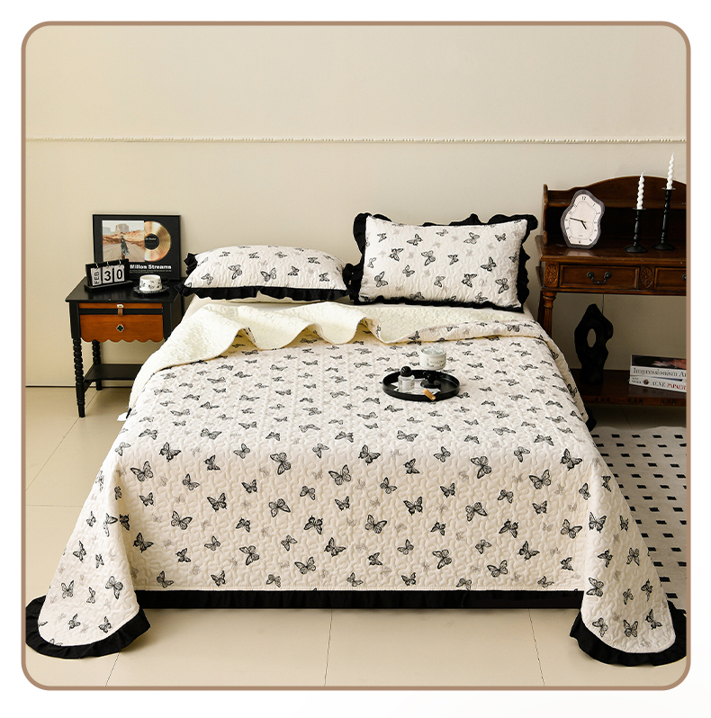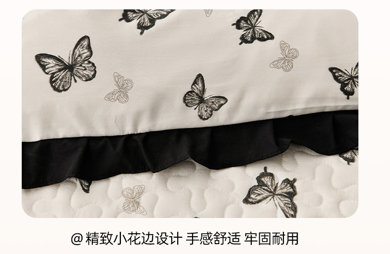 商品名称:佳品居 2025新款A类水洗棉夹棉夏被床盖四件套-赫本风 赫本风-蝴蝶花