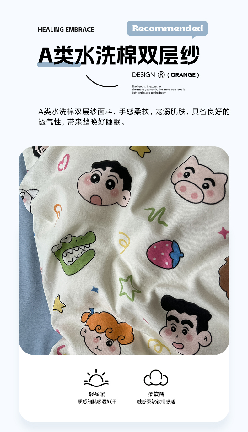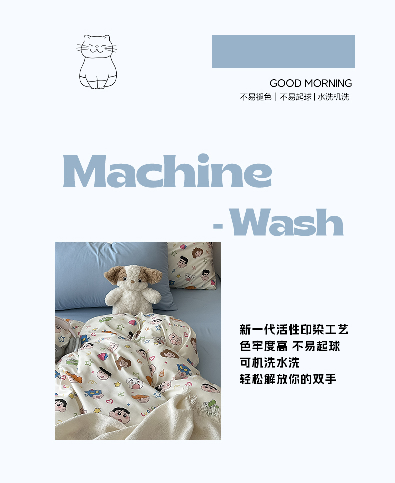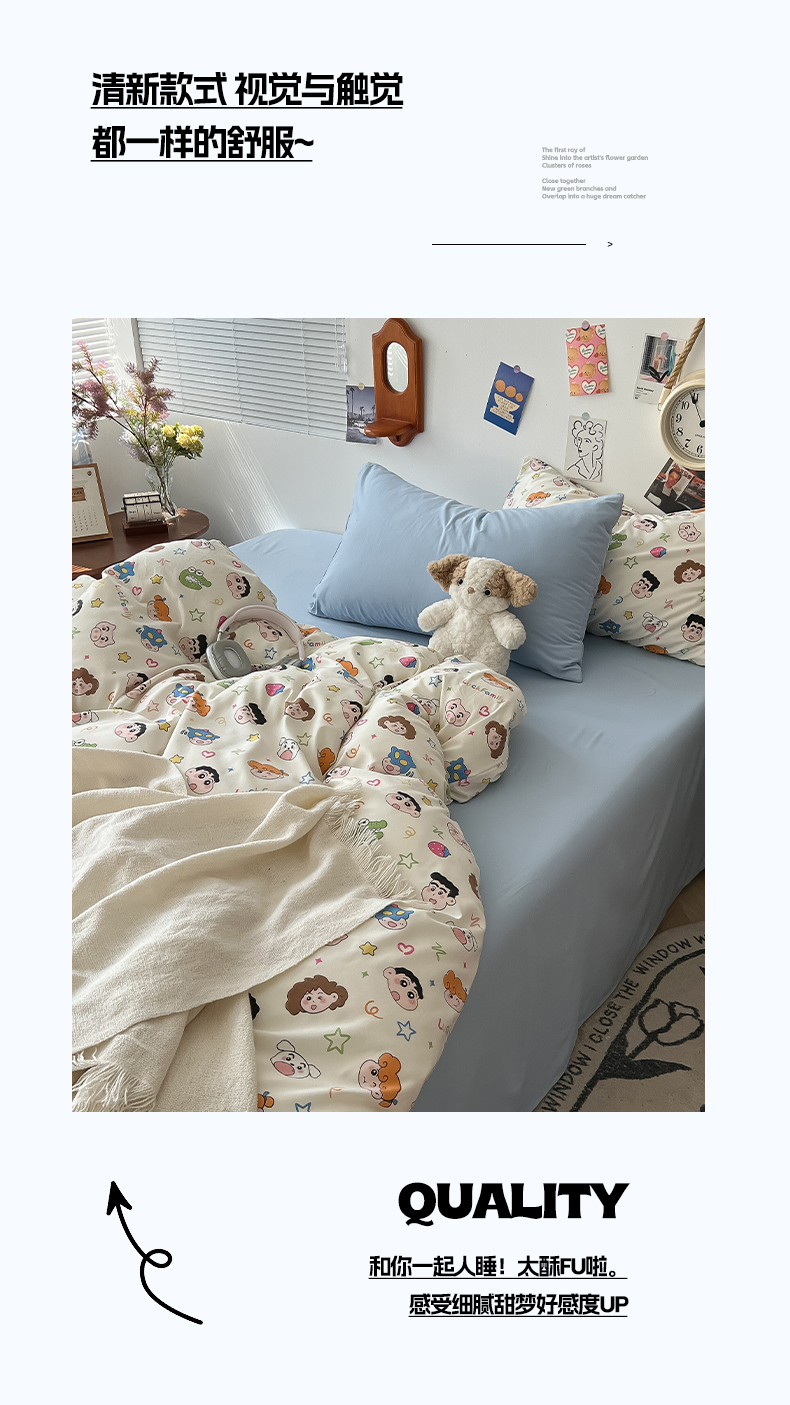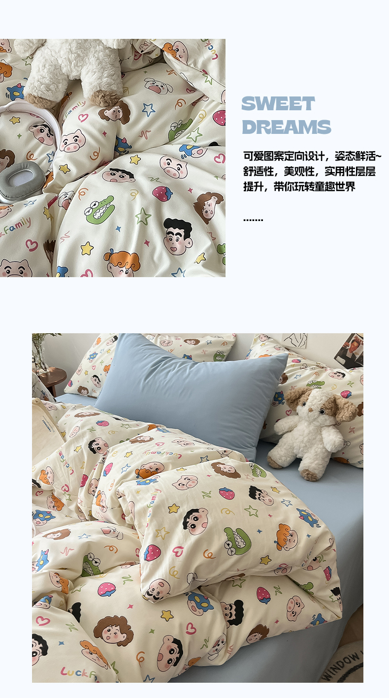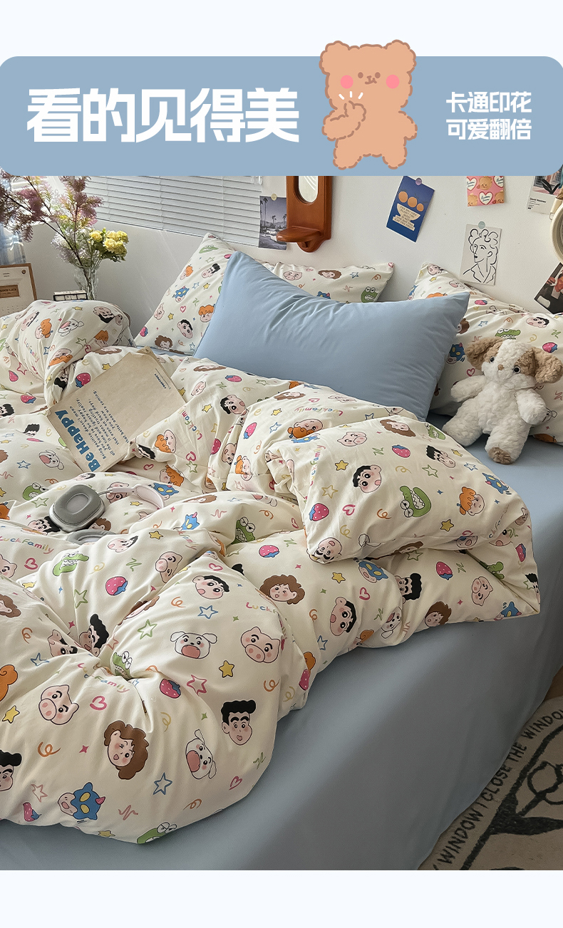 当前位置: 91家纺网 > 商品网购 > 床品套件 > 四件套 > 水洗棉四件套 > 罗亿家纺 2025新款软绵绵的双拼印花小清新云朵皱皱水洗棉四件套(含买家秀) 蜡笔小新