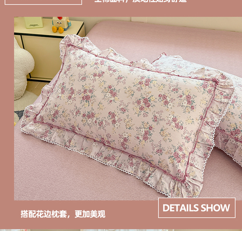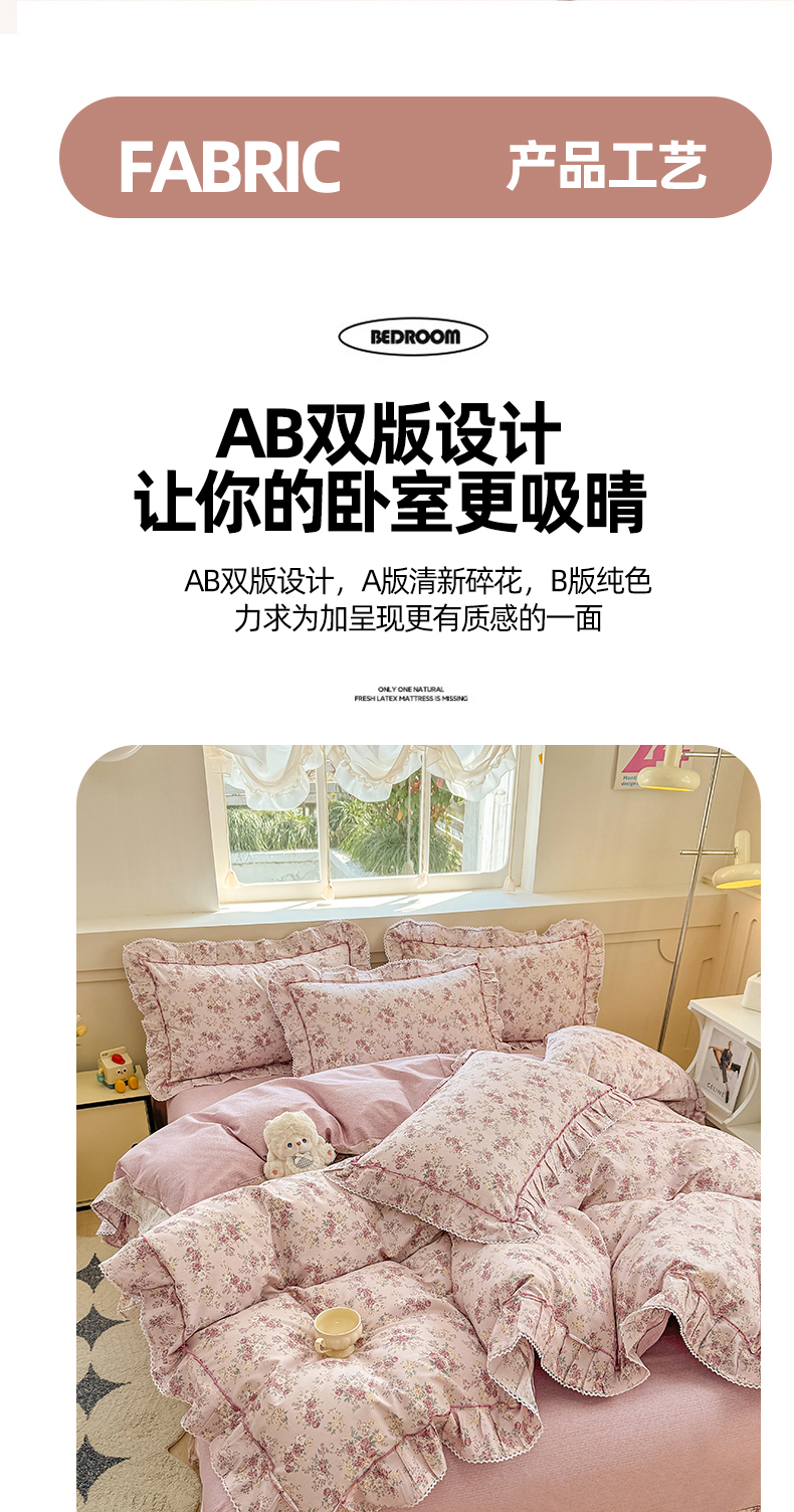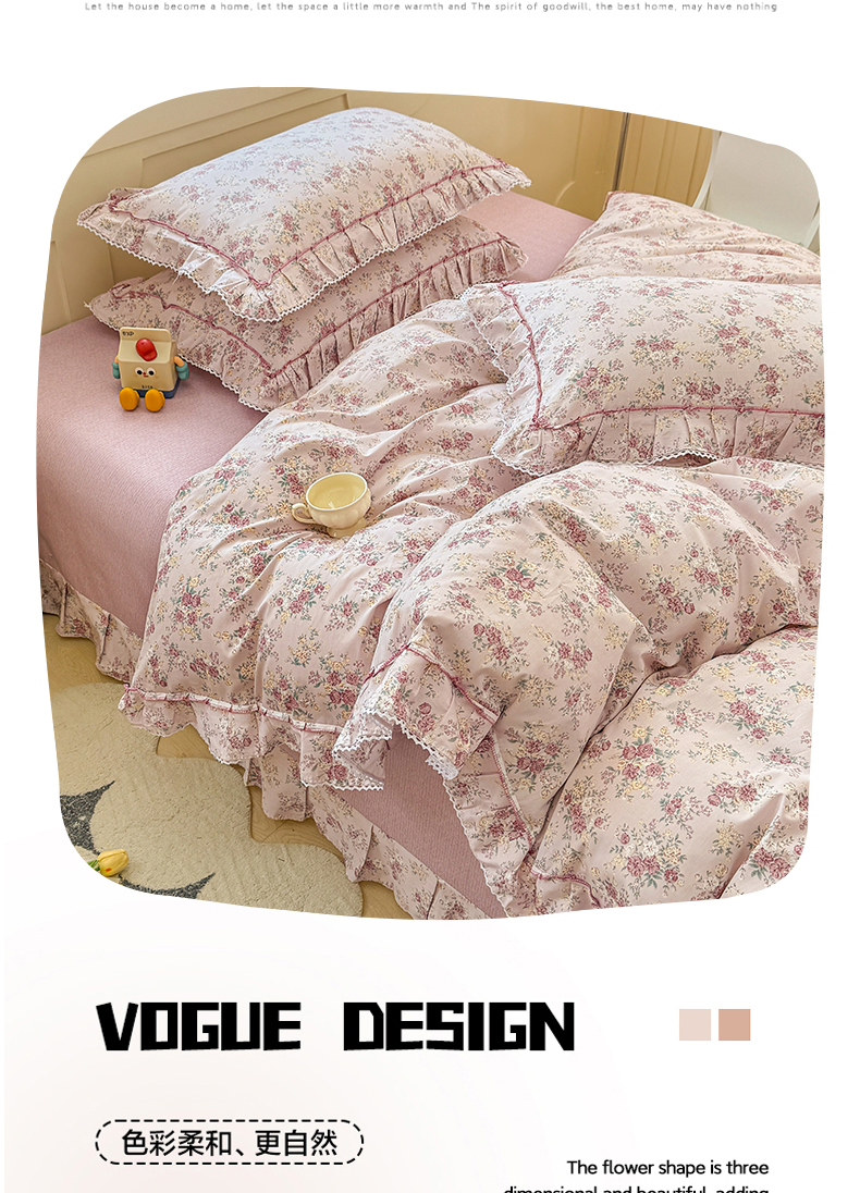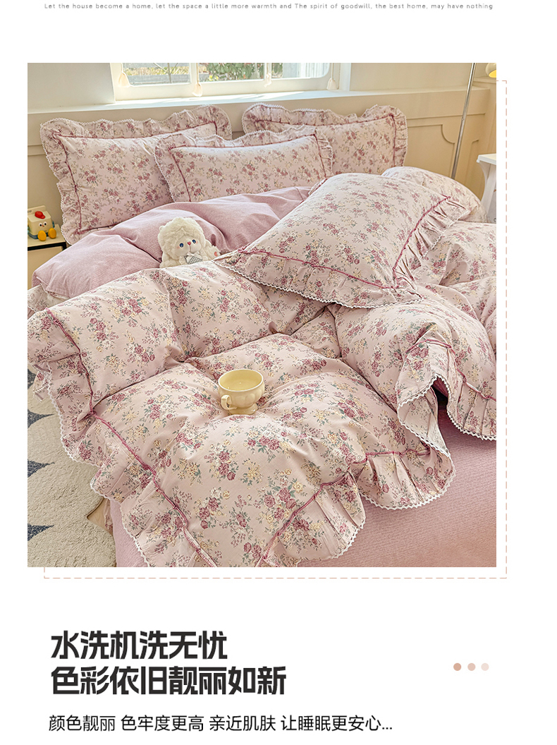 (总)缦彩 2025新款全棉纯棉夹棉公主风花边床裙四件套,缤纷绮梦,蒂芙尼,多丽粉,卡曼-粉,雾岛听风-粉,小萝莉