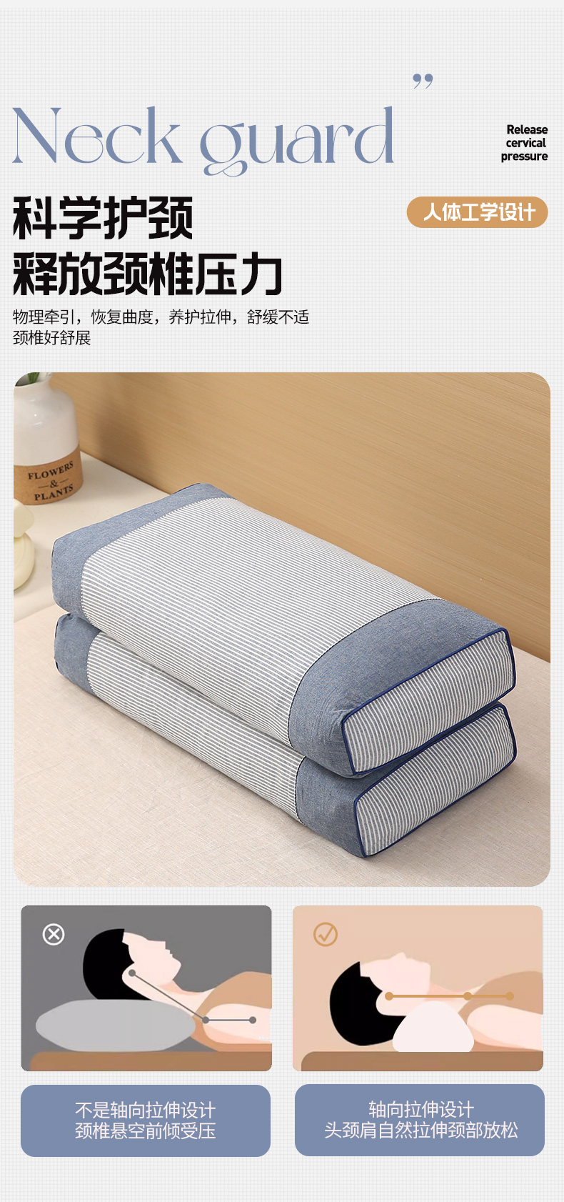 (总)珍贝家纺 2025新款反牵引颈椎枕枕头枕芯,颈枕-咖色边,颈枕-蓝色边